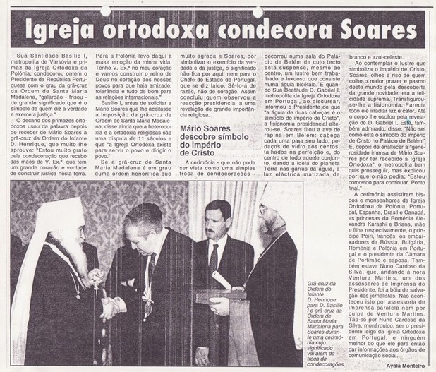 Ortodoxa de Portugal era a única Representante da Igreja Ortodoxa Universal,