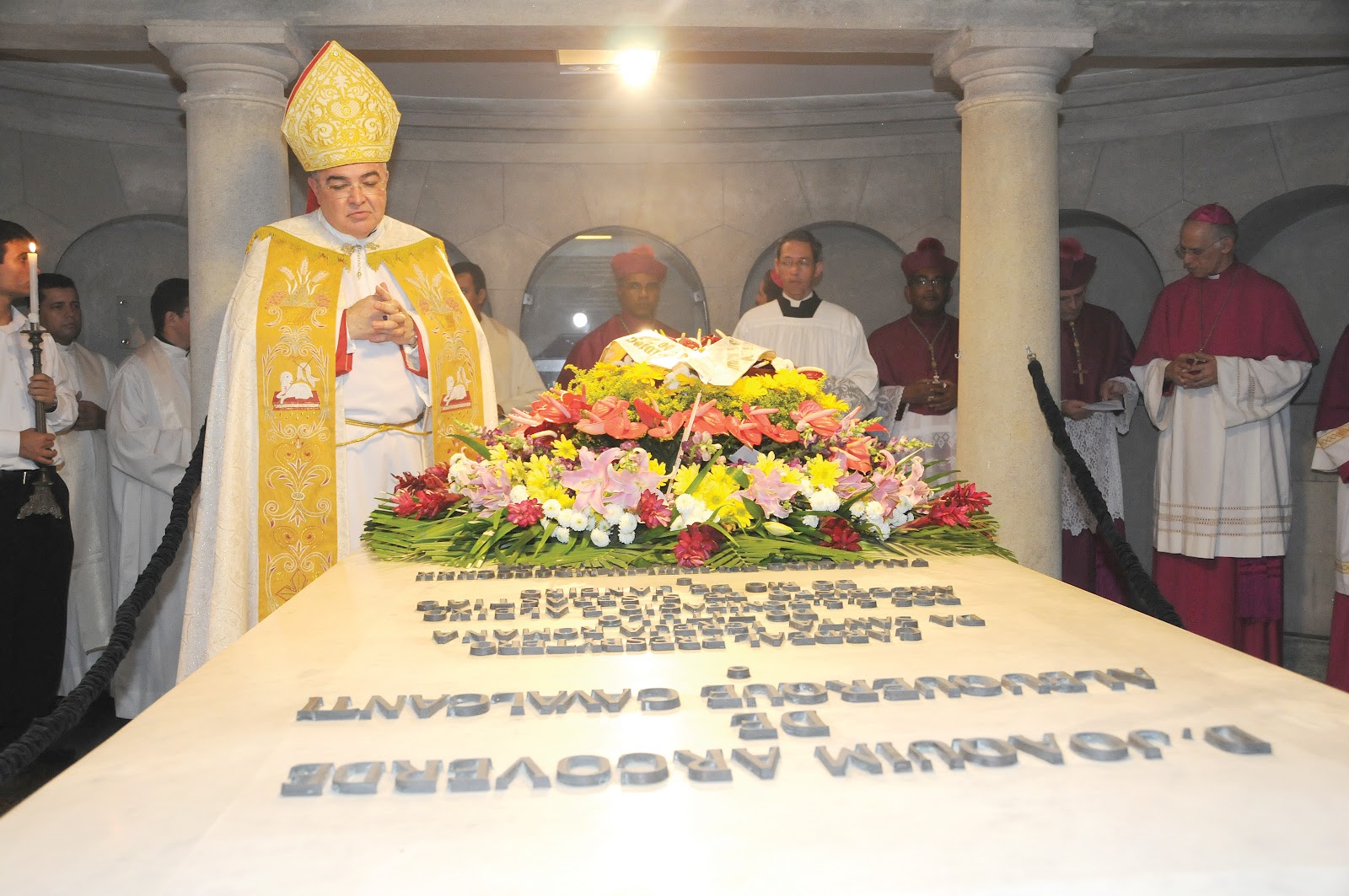 Sua Emª Rev.ma D. Orani, Cardeal Arcebispo do Rio de Janeiro - RJ, junto ao túmulo