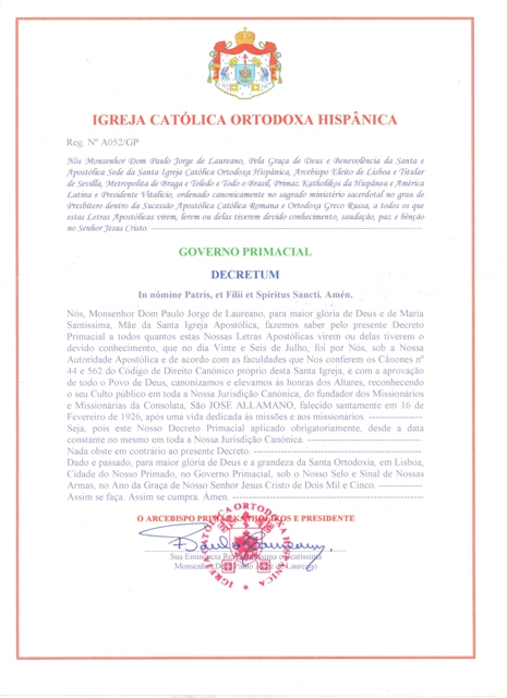 em toda a nossa Jurisdição Canónica, pelo Decreto