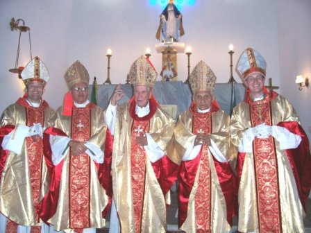Os Bispos da Igreja Católica Apostólica Brasileira - Dom Ivan Dutra de Moraes (esqª), Dom Manoel da Rocha, Dom Isaac, Dom Luiz Castillo Mendez, Dom Josivaldo Pereira de Oliveira, e Dom Wagner Rodrigues