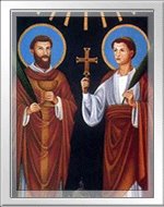 Esta página da História da Igreja foi-nos confirmada por S.S. Dâmaso, que na época era um adolescente e testemunhou os acontecimentos. Foi assim que tudo se passou. Na Roma dos tempos terríveis e sangrentos do imperador Diocleciano, o Padre Marcelino era um dos sacerdotes mais respeitados entre o clero romano. Por meio dele e de Pedro, outro sacerdote, exorcista, muitas conversões ocorreram na capital do império. Como os dois se tornaram conhecidos por todos daquela comunidade, inclusive dos pagãos, não demorou a serem denunciados como cristãos. Isto porque os mais visados eram os líderes da nova religião e os que se destacavam como exemplo entre a população. Intimados, Marcelino e Pedro foram presos para julgamento. No cárcere, conheceram Artémio, o director da prisão. Alguns dias depois notaram que Artémio andava triste. Conversaram com ele e o miliciano contou que sua filha Paulinha estava à beira da morte, atacada por convulsões e contorções espantosas, motivadas por um mal misterioso que os médicos não descobriam a causa. Para os dois, aquilo indicava uma possessão demoníaca. Falaram sobre o cristianismo, Deus e o demónio e sobre a libertação dos males pela fé em Jesus Cristo. Mas Artémio não lhes deu crédito. Até que naquela noite presenciou um milagre que mudou o seu destino. Segundo consta, um anjo libertou Pedro das correntes e ferros e o conduziu à casa de Artémio. O miliciano, perplexo, apresentou-o à sua esposa Cândida. Pedro então disse ao casal que a cura da filha Paulinha dependeria de suas sinceras conversões. Começou a pregar a Palavra de Cristo e pouco depois os dois converteram-se. Paulinha curou-se e converteu-se também. Dias depois, Artémio libertou Marcelino e Pedro, provocando a ira de seus superiores. Os dois foram recapturados e condenados à decapitação. Entretanto, Artémio, Cândida e Paulinha foram escondidos pelos cristãos, mas eles passaram a evangelizar publicamente conseguindo muitas conversões. Assim, logo foram localizados e imediatamente executados. Artémio morreu decapitado, enquanto Cândida e Paulinha foram colocadas vivas dentro de uma vala que foi sendo coberta por pedras até morrerem sufocadas. Quanto aos santos, o Prefeito de Roma ordenou que fossem também decapitados, porém fora da cidade, para que não houvesse comoção popular. Foram levados para um bosque isolado onde lhes cortaram as cabeças. Era o dia 02 de Junho de 304. Os seus corpos ficaram ali escondidos numa gruta límpida, por muito tempo. Depois foram encontrados por uma rica e pia senhora, de nome Lucila, que desejava dar uma digna e cristã sepultura aos santos de sua devoção. O culto dedicado a eles se espalhou no mundo católico até que o imperador Constantino mandou construir sobre essas sepulturas uma igreja. Outros séculos se passaram e, em 1751, no lugar da igreja foi erguida a belíssima basílica de São Marcelino e São Pedro, para conservar a memória dos dois santos mártires, que existe até hoje.