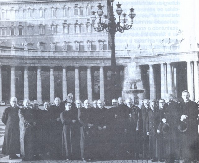 Sua Exª Rev.ma D. Salomão Ferraz (3º a contar da direita) com o episcopado brasileiro, em plena Praça de São Pedro durante o Concílio Vaticano II