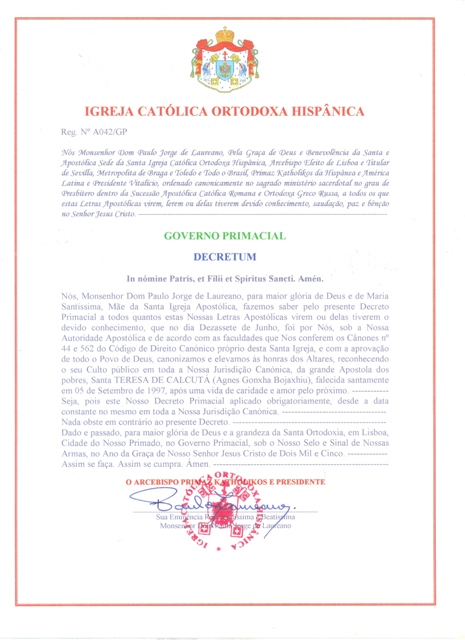Foi canonizada e elevado ás honras dos Altares, em toda a nossa Jurisdição