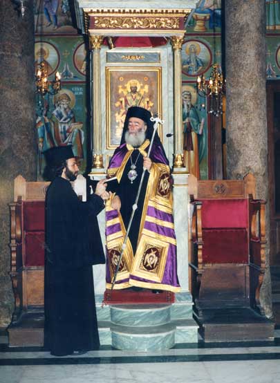 Em 23 de Abril de 1978 recebeu a Sagrada Ordenação Episcopal das mãos de Sua Emª Rev.ma Mgr. Theodore Tzedakis, Metropolita de Lambis e Sfakion, sendo Chanceler da Metropolia de Lambis e Sfakion, em Creta, até 1985, onde desenvolveu pregação significativa e actividades filantrópicas. De 1985 a 1990 foi Exarca Patriarcal na Rússia, com sede na cidade ucraniana de Odessa, durante o pontificado dos Patriarcas S.S. Nicolau VI e S.S. Partênio III.