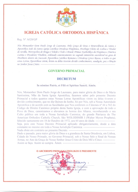 em toda a nossa Jurisdição Canónica, pelo Decreto