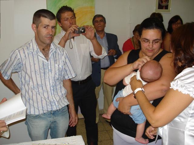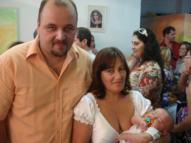 O pequeno André ao colo dos padrinhos