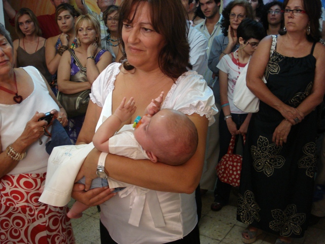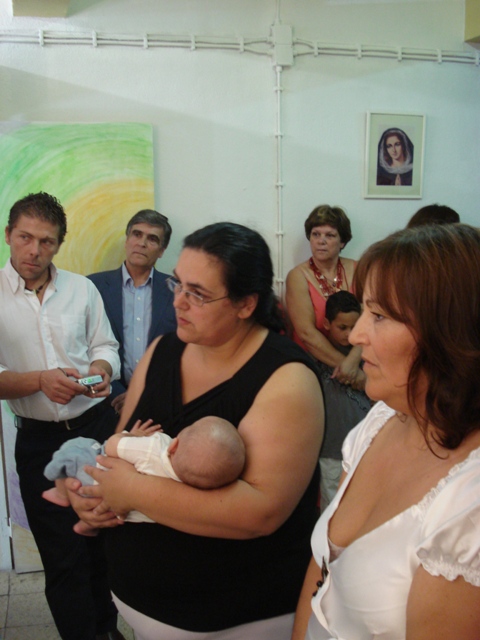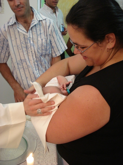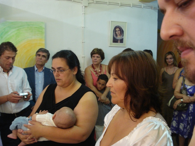 O pequeno André ao colo da madrinha