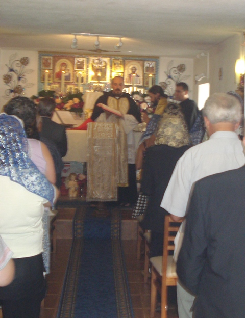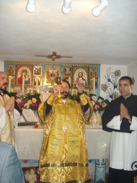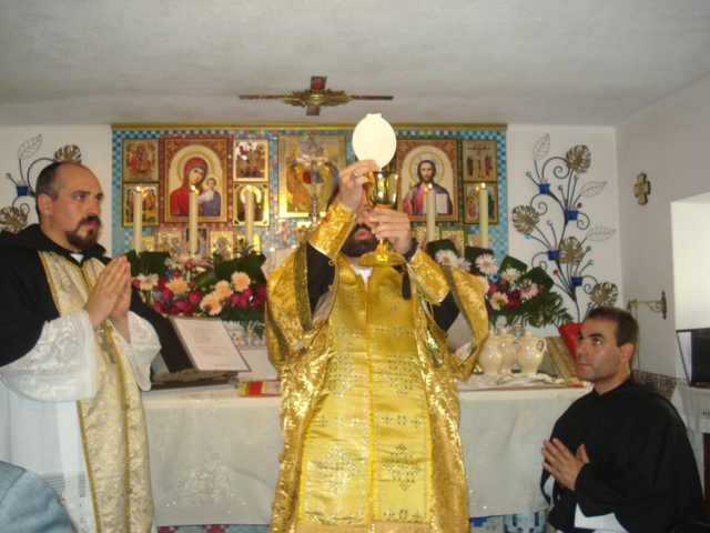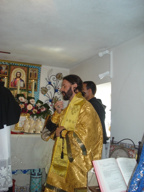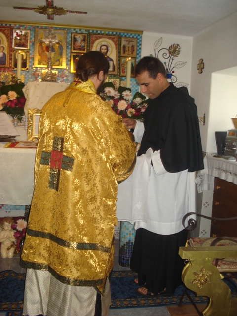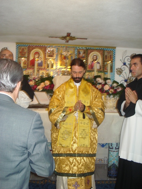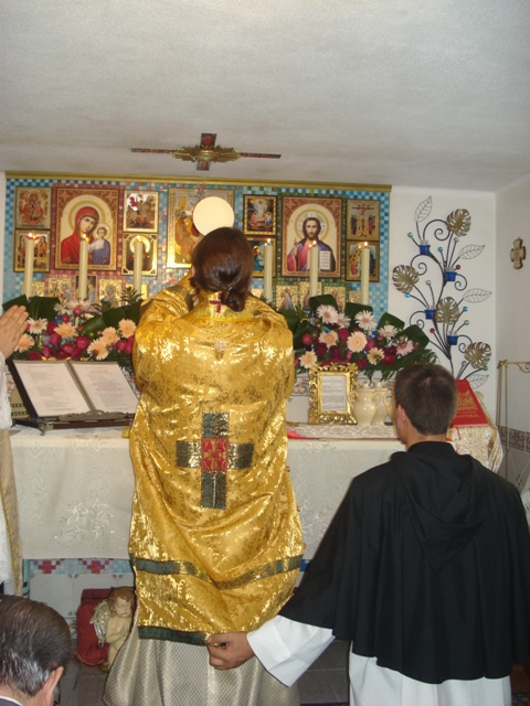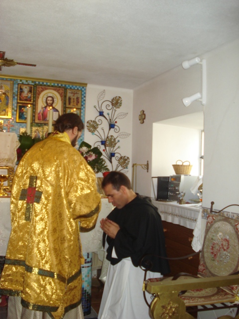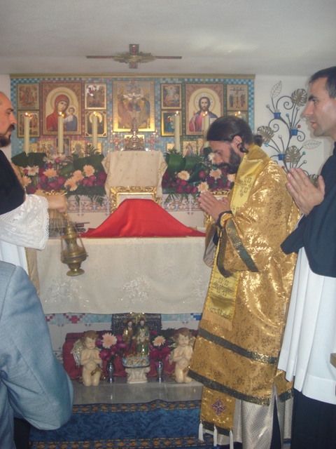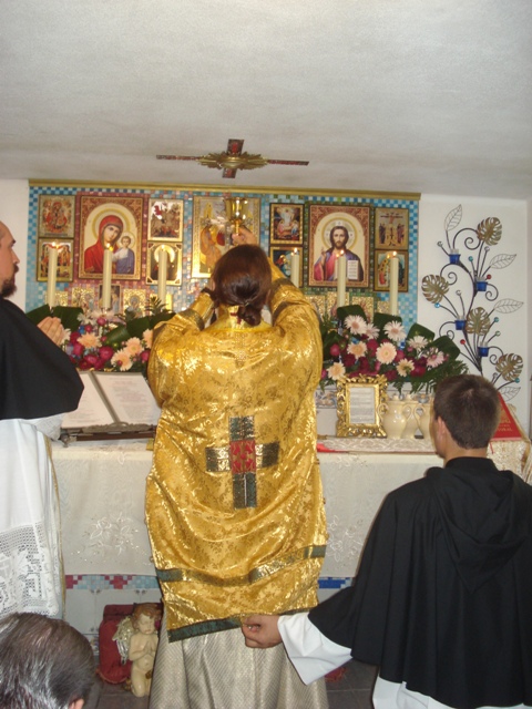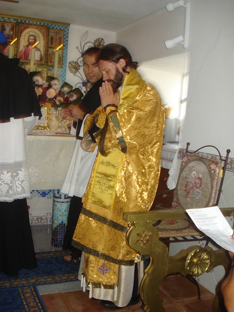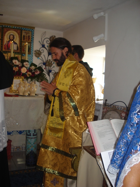O Padre Humberto Jorge Pereira Rolo na oração mariana antes da Divina Liturgia da Dormição da Bem-Aventurada Virgem Maria