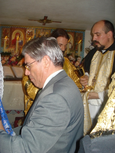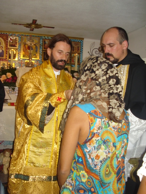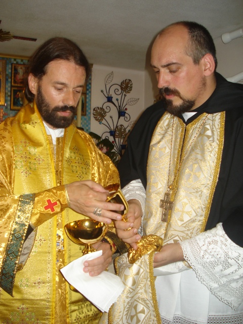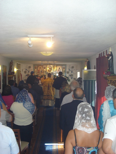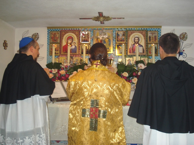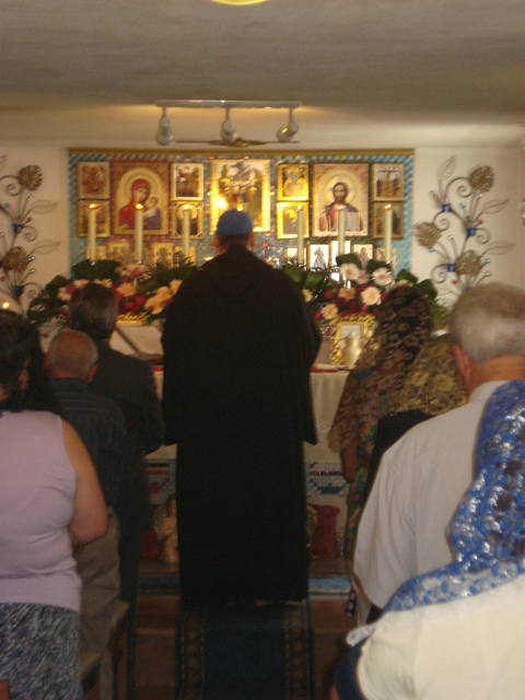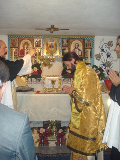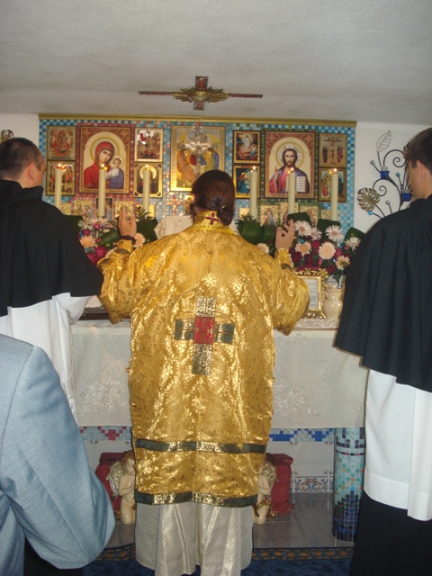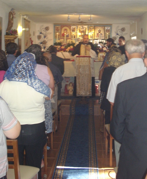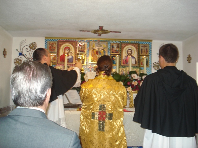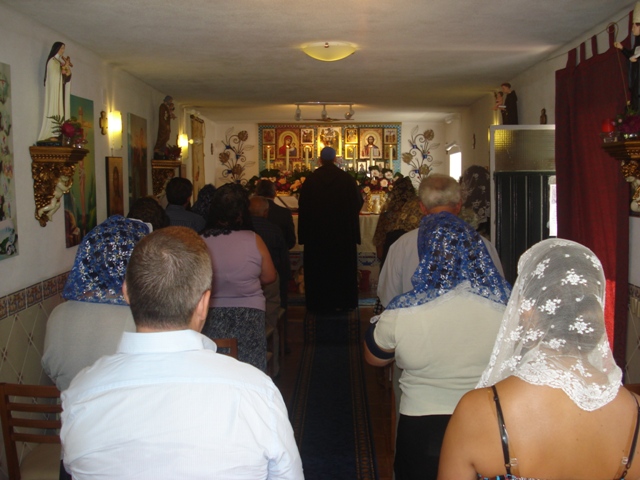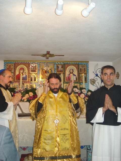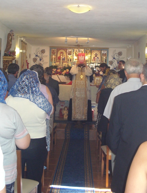 O Padre Humberto Jorge Pereira Rolo na oração mariana antes da Divina Liturgia da Dormição da Bem-Aventurada Virgem Maria