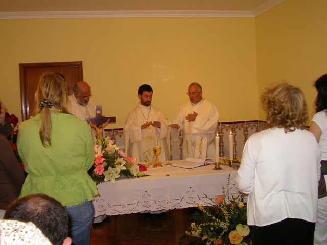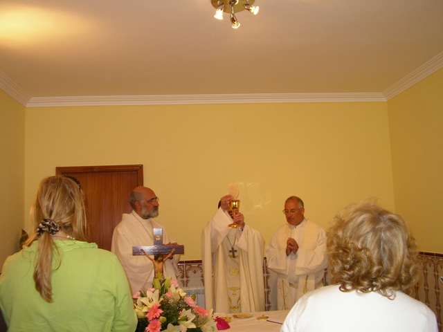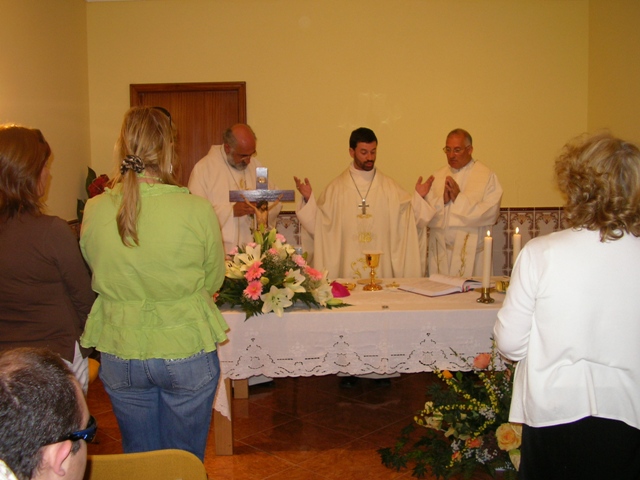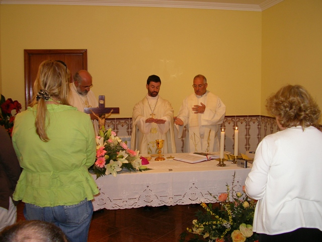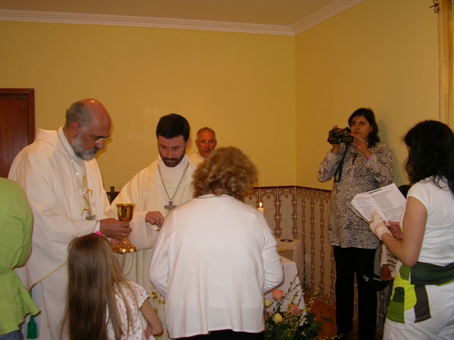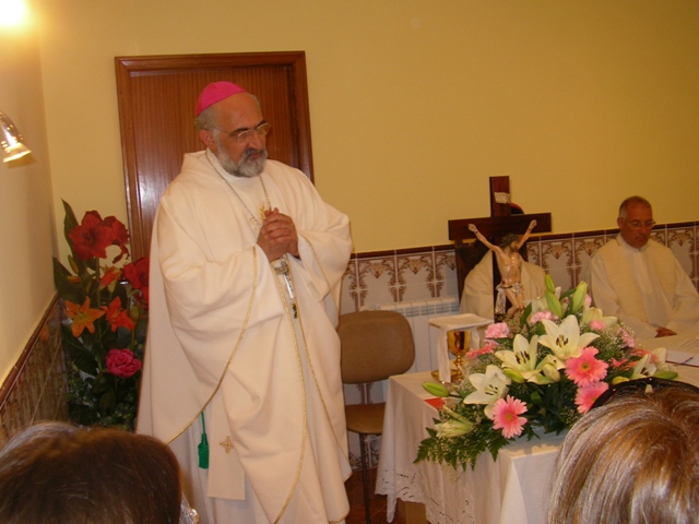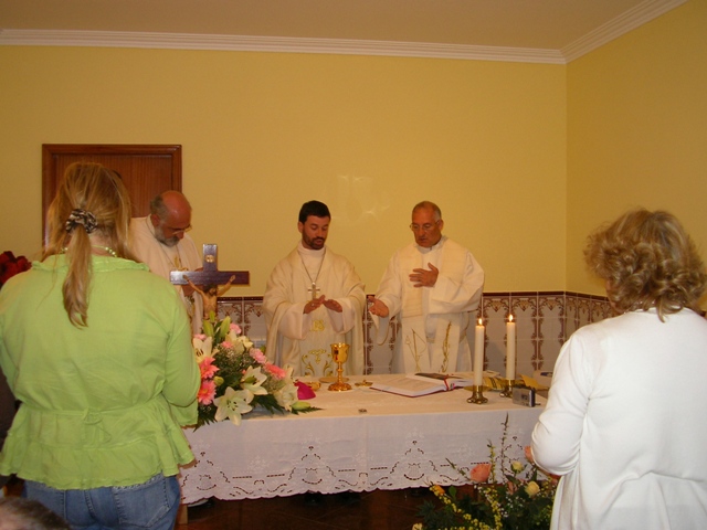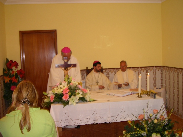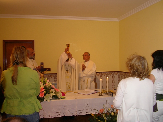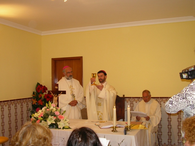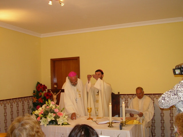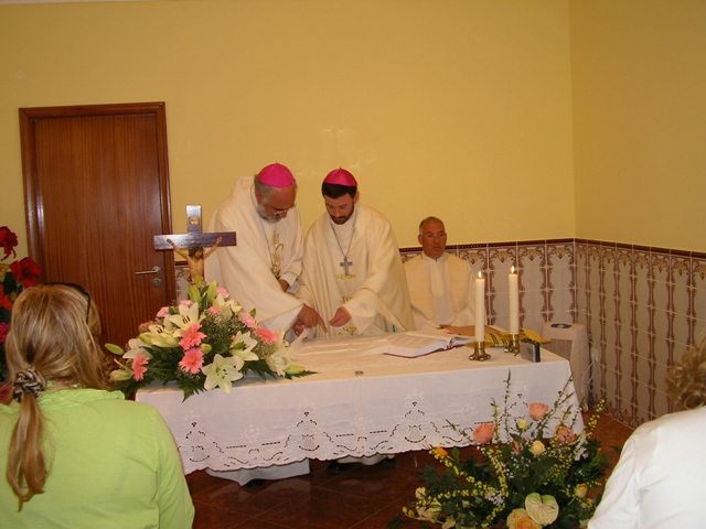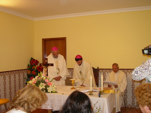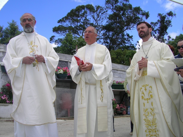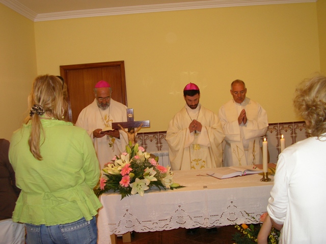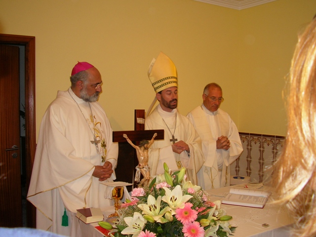 Sua Eminência Reverendíssima e Beatíssima Dom Paulo Jorge de Laureano (ao centro), Arcebispo Primaz Katholikos e Presidente da Igreja Católica Ortodoxa Hispânica – ICOH no início da Celebração, ladeado pelo Sr. Fernão Marques Gomes (Deposto e reduzido ao Estado Laical em 29 de Junho de 2015), então Arcebispo-Eleito Titular de Tarso e Vigário Primacial (esqª), e o Padre Amador de Sousa José (dirª)