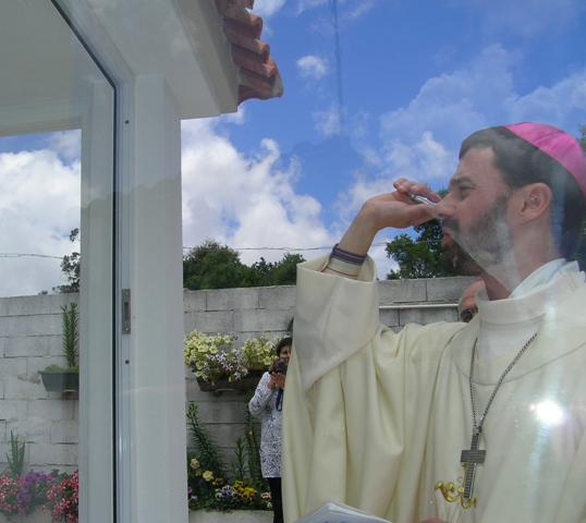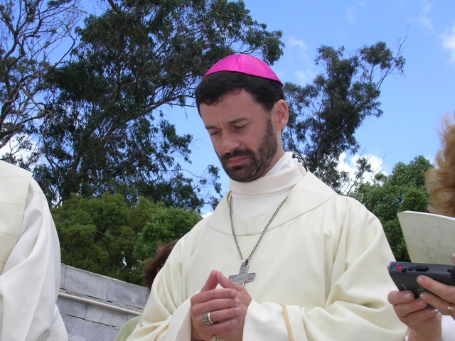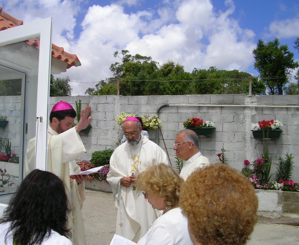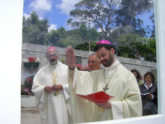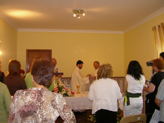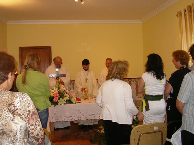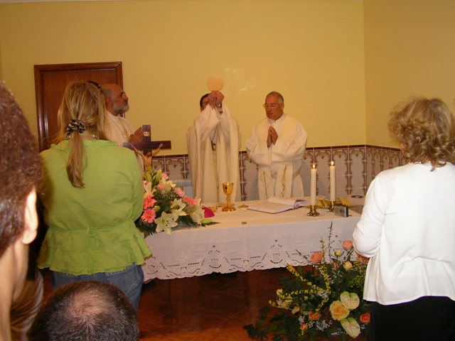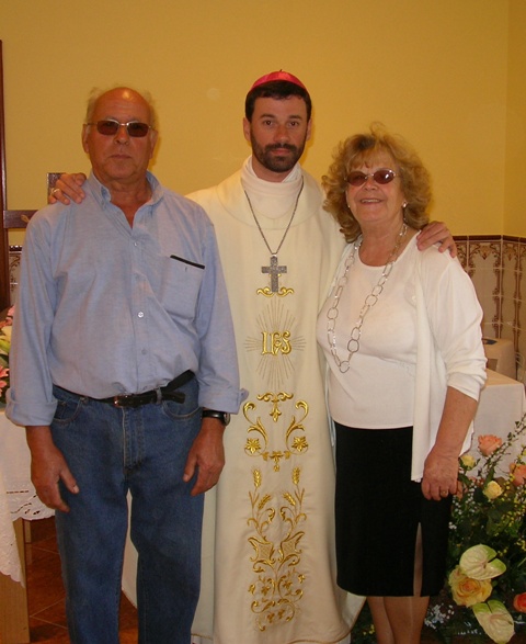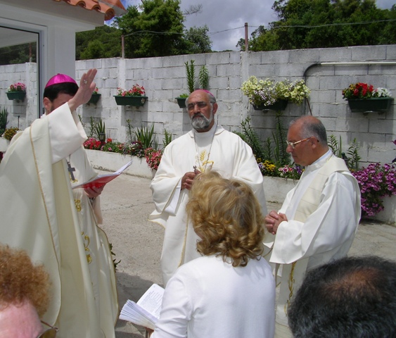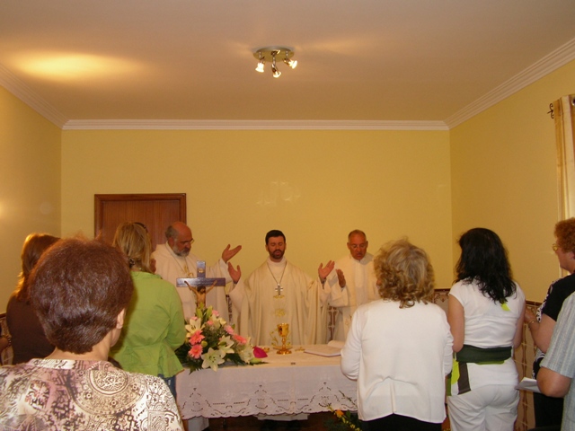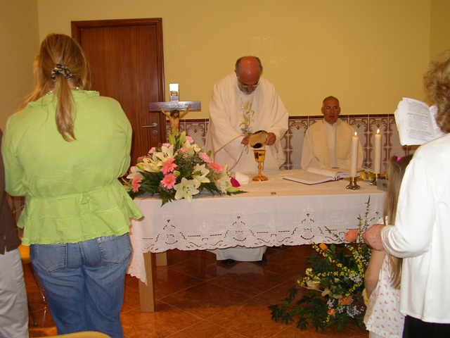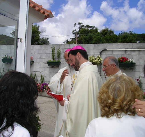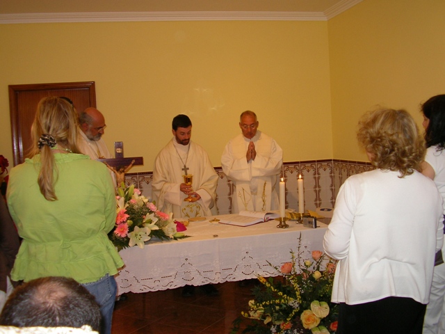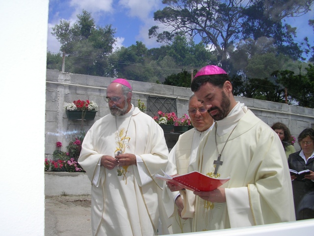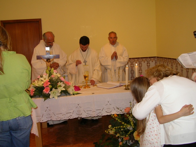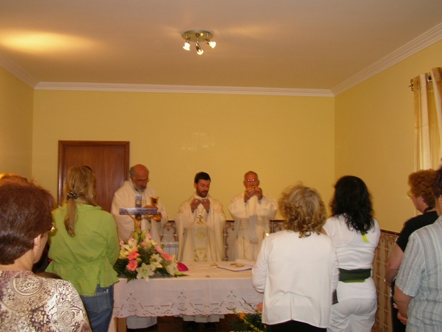 Sua Eminência Reverendíssima e Beatíssima Dom Paulo Jorge de Laureano (ao centro), Arcebispo Primaz Katholikos e Presidente da Igreja Católica Ortodoxa Hispânica – ICOH no início da Celebração, ladeado pelo Sr. Fernão Marques Gomes (Deposto e reduzido ao Estado Laical em 29 de Junho de 2015), então Arcebispo-Eleito Titular de Tarso e Vigário Primacial (esqª), e o Padre Amador de Sousa José (dirª)