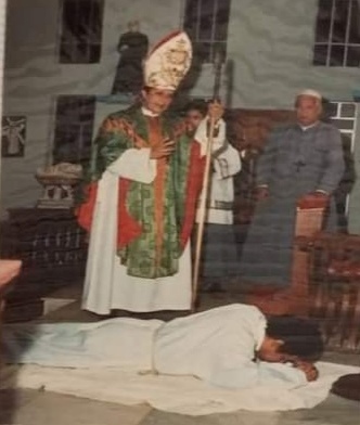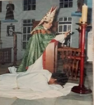 Recebendo a Imposição de Mãos do Bispo Ordenante