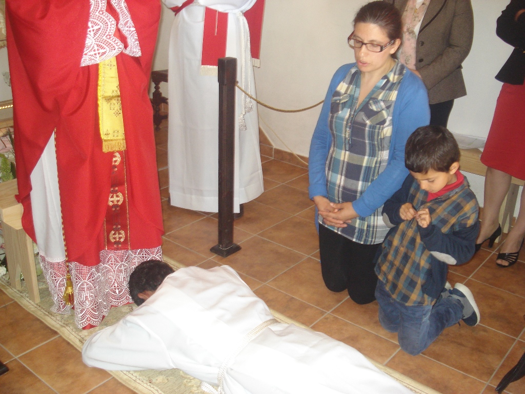 O eleito faz o seu juramento de obediência e reverência perante o Bispo Ordenante