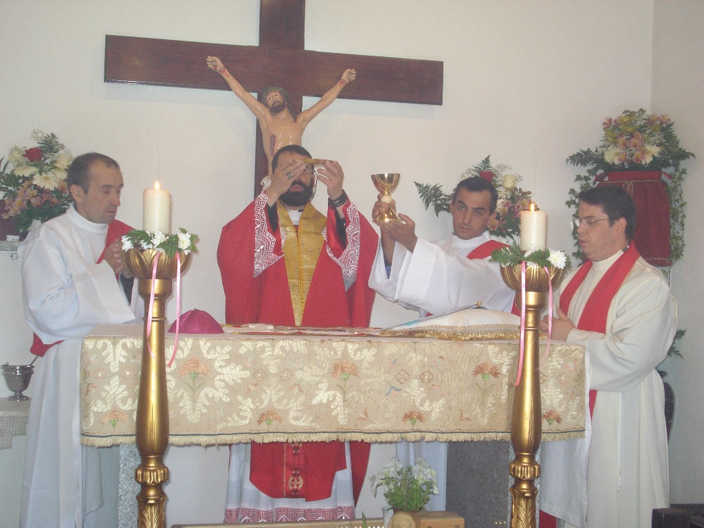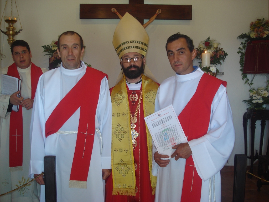 O Pe. César Barata (esqª), o Pe. Diác. João Lourinho, com o Arcebispo Primaz Katholikos e o Pe. Diác. Marco Roxo