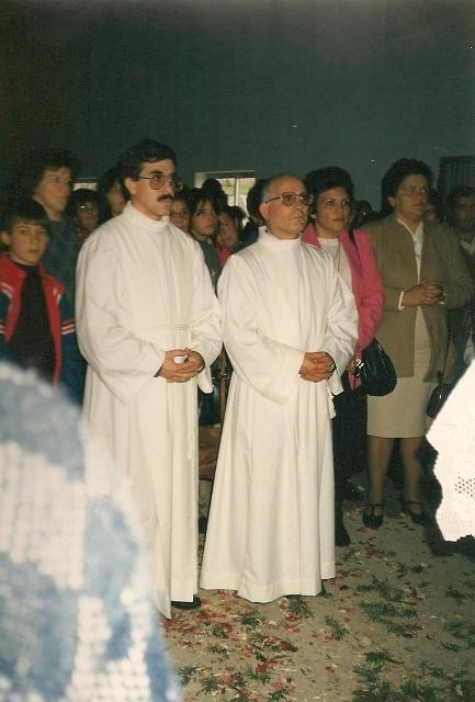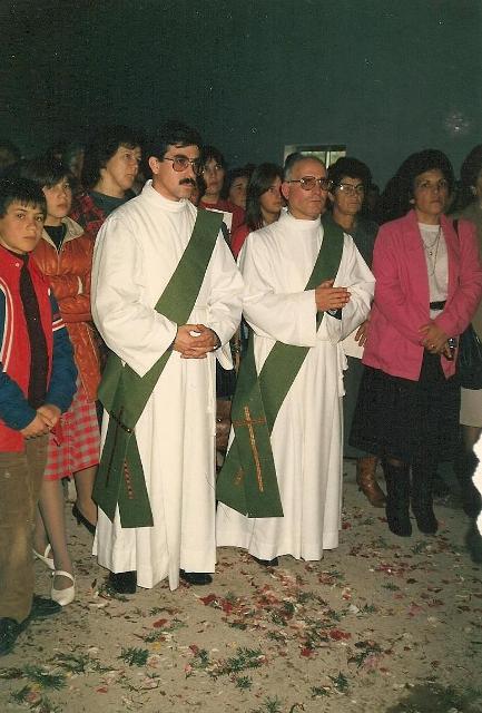 Eng. Luís Manuel dos Reis Gonçalves juntamente com o outro ordenando durante a chamada sobre as disposições dos eleitos antes de receberem a sagrada ordenação diaconal