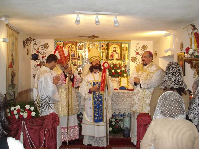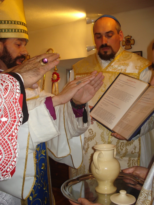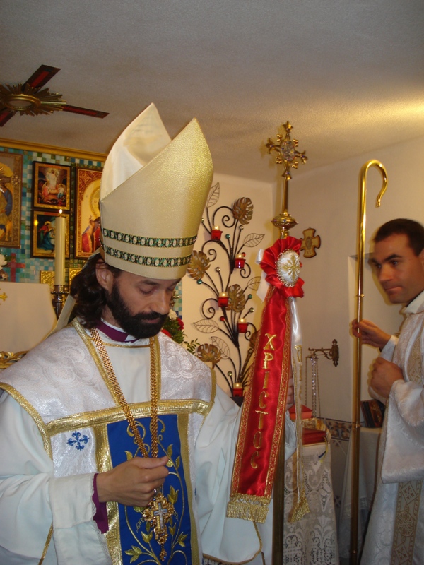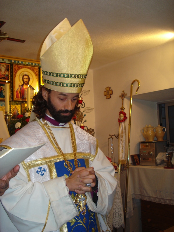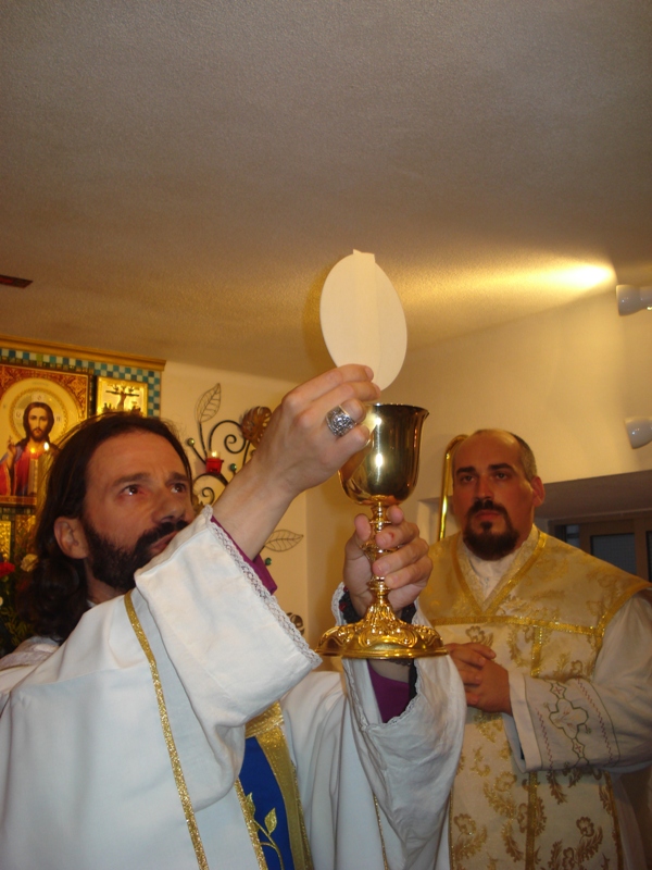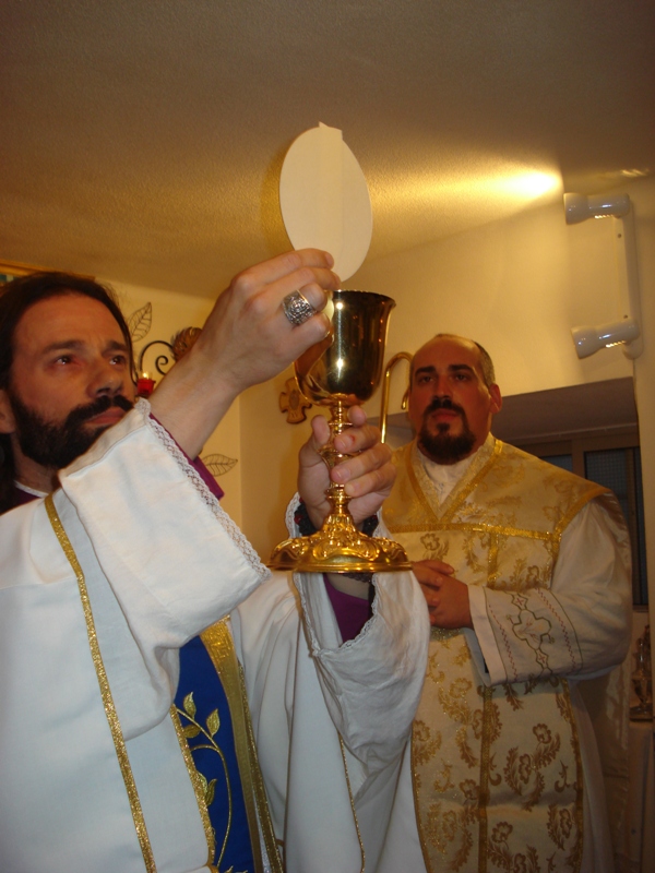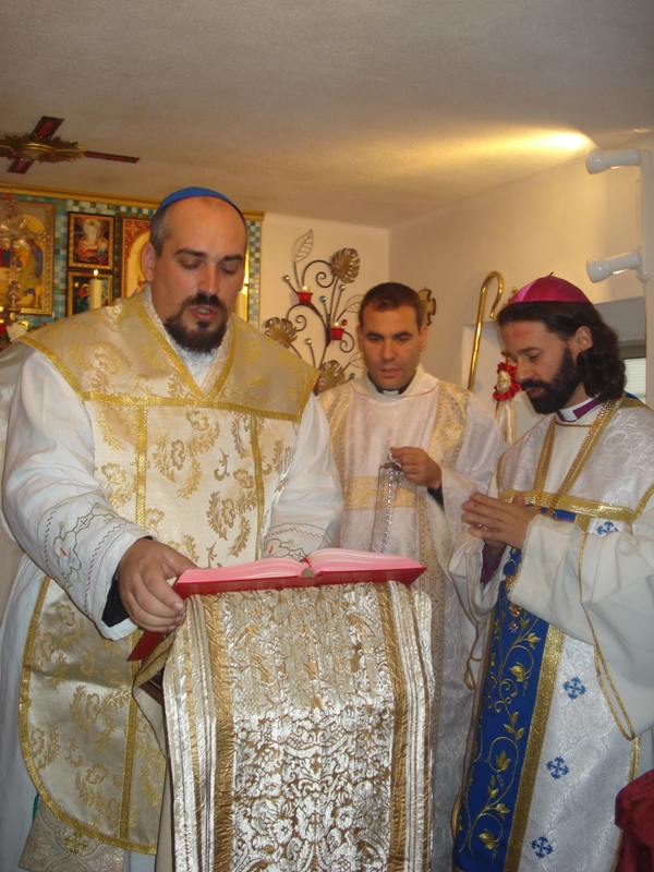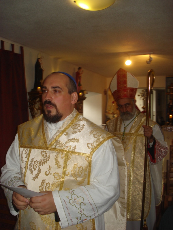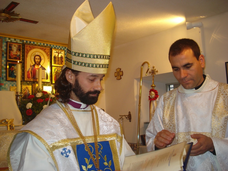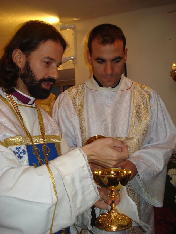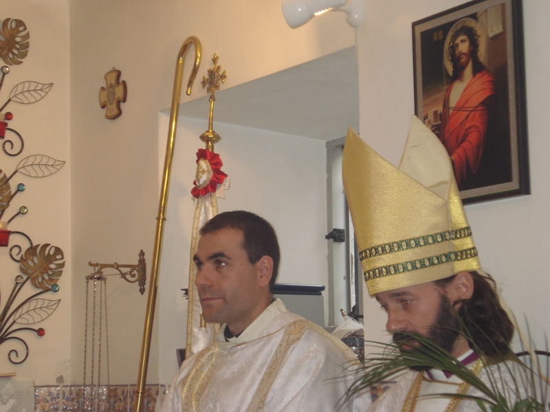 O Padre Humberto Jorge Pereira Rolo (André I da Hispânea) e o Sr. Fernão Marques Gomes (Deposto e reduzido ao Estado Laical em 29 de Junho de 2015), durante a procissão de entrada