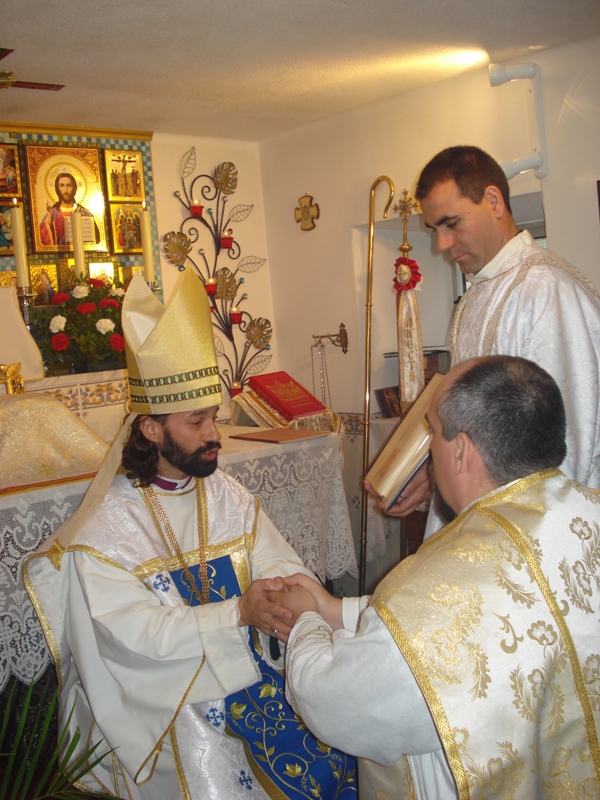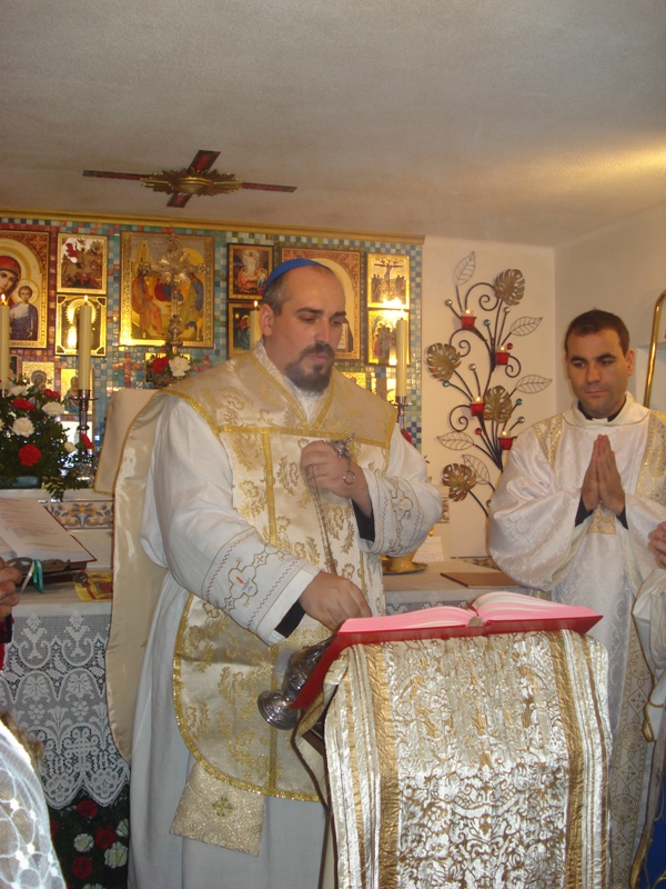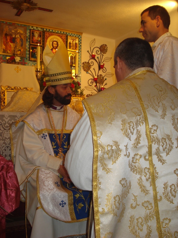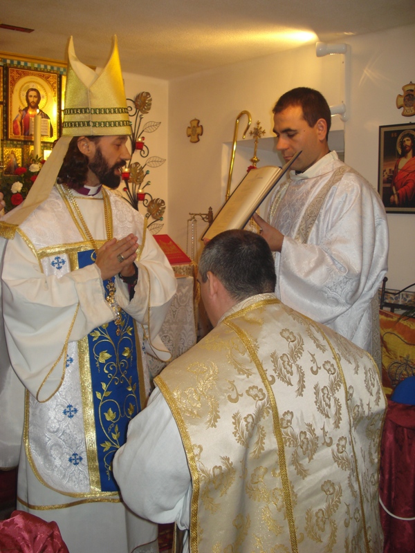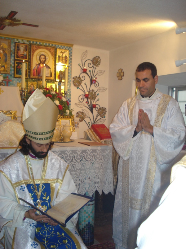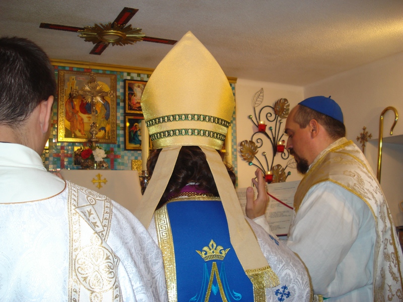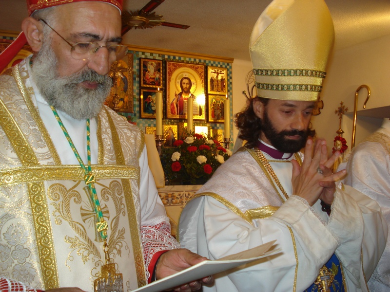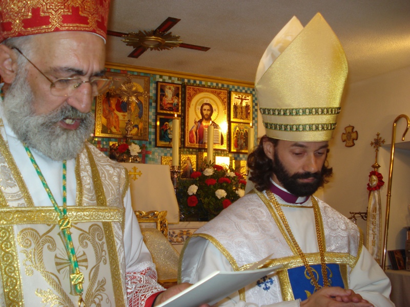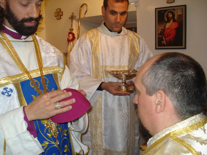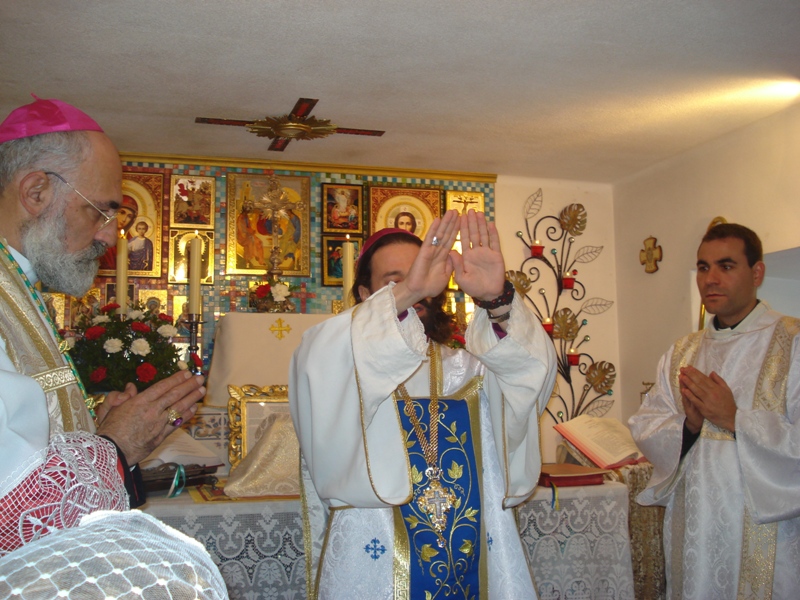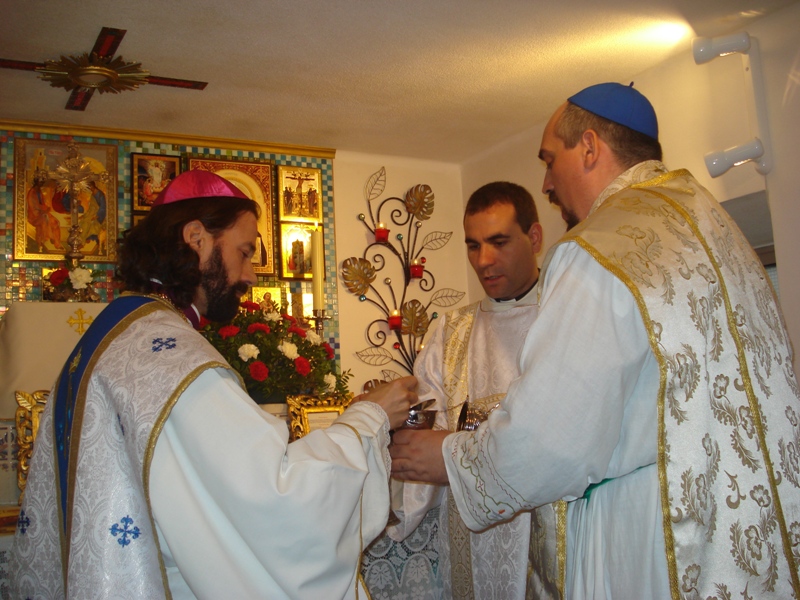 O Padre Humberto Jorge Pereira Rolo (André I da Hispânea) e o Sr. Fernão Marques Gomes (Deposto e reduzido ao Estado Laical em 29 de Junho de 2015), durante a procissão de entrada