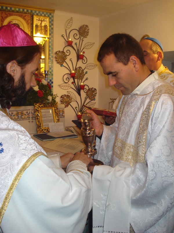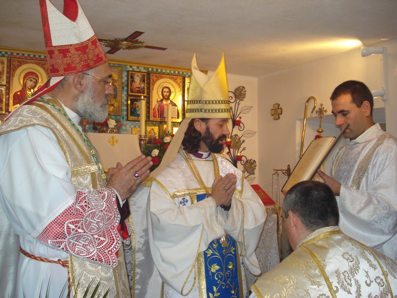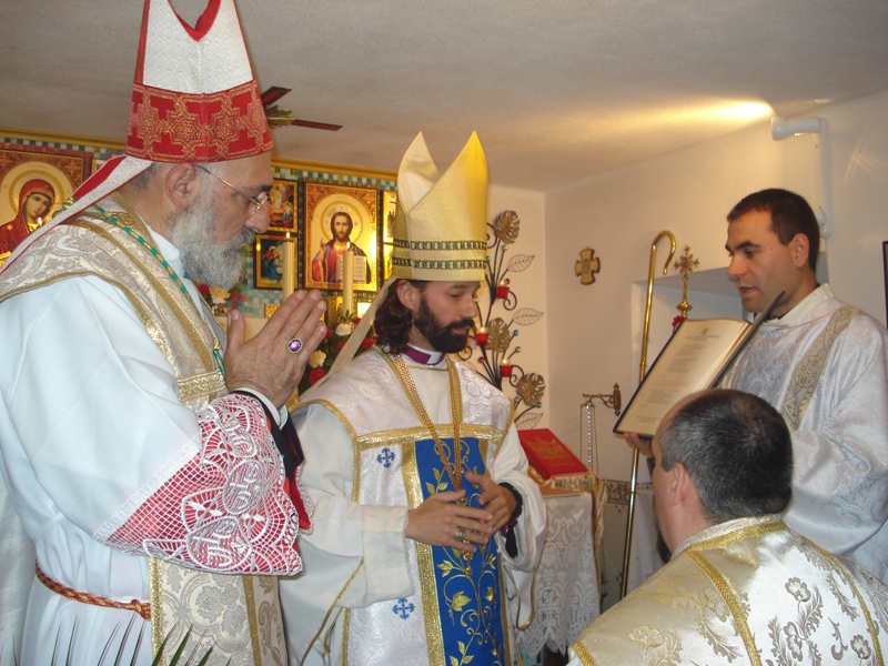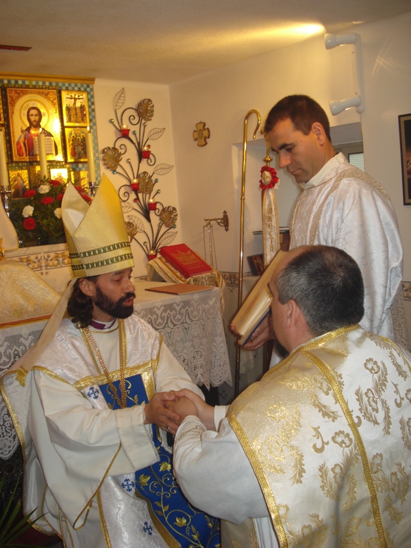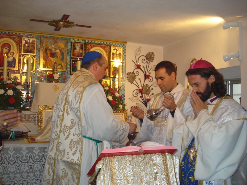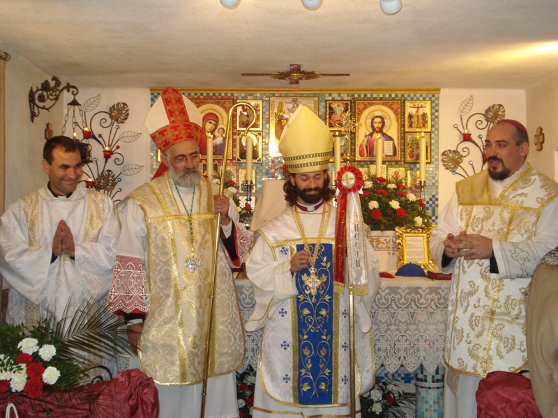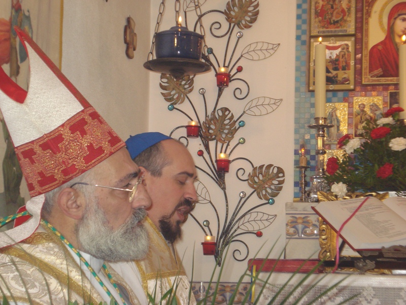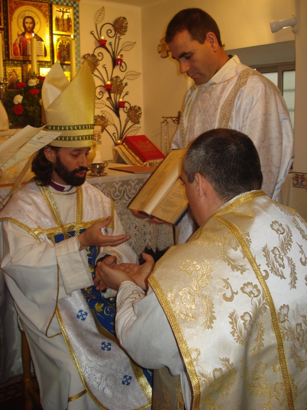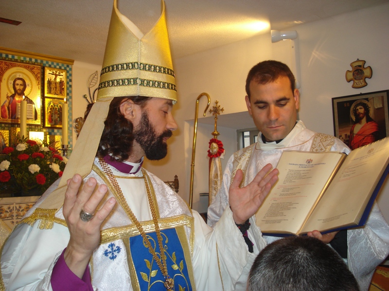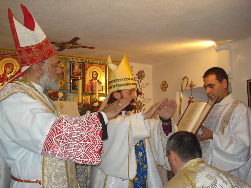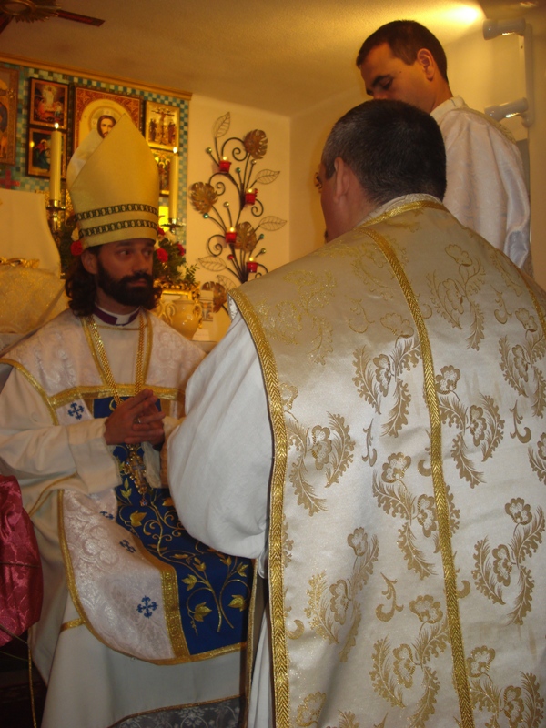 O Padre Humberto Jorge Pereira Rolo (André I da Hispânea) e o Sr. Fernão Marques Gomes (Deposto e reduzido ao Estado Laical em 29 de Junho de 2015), durante a procissão de entrada