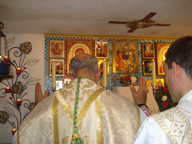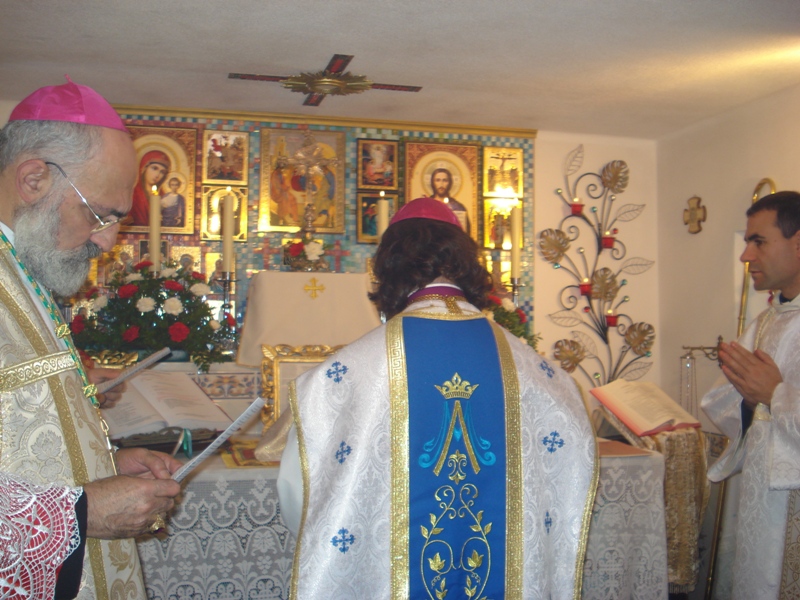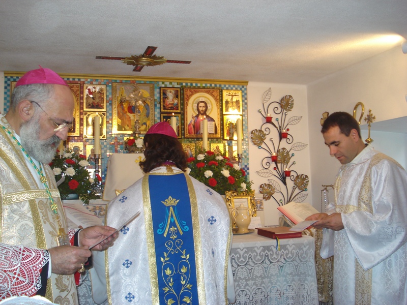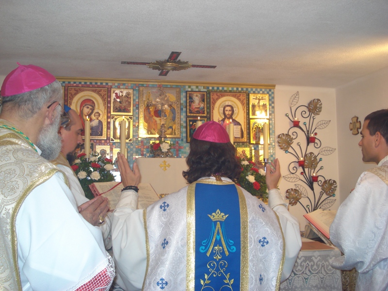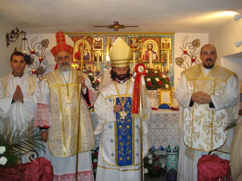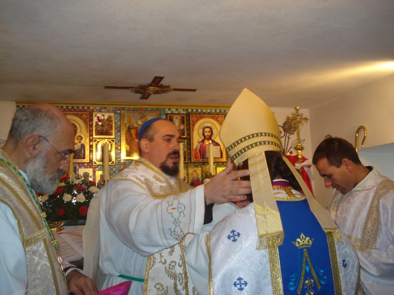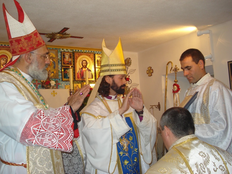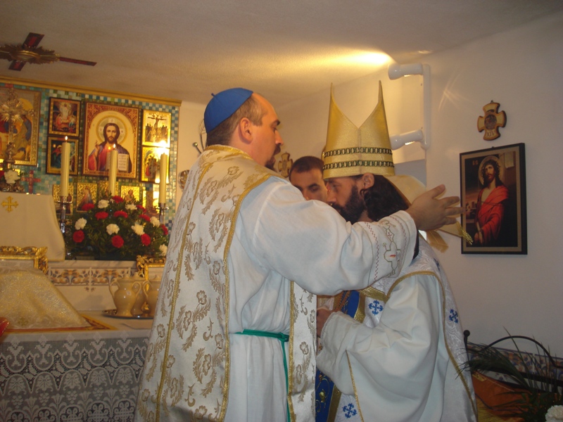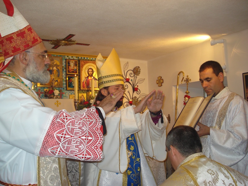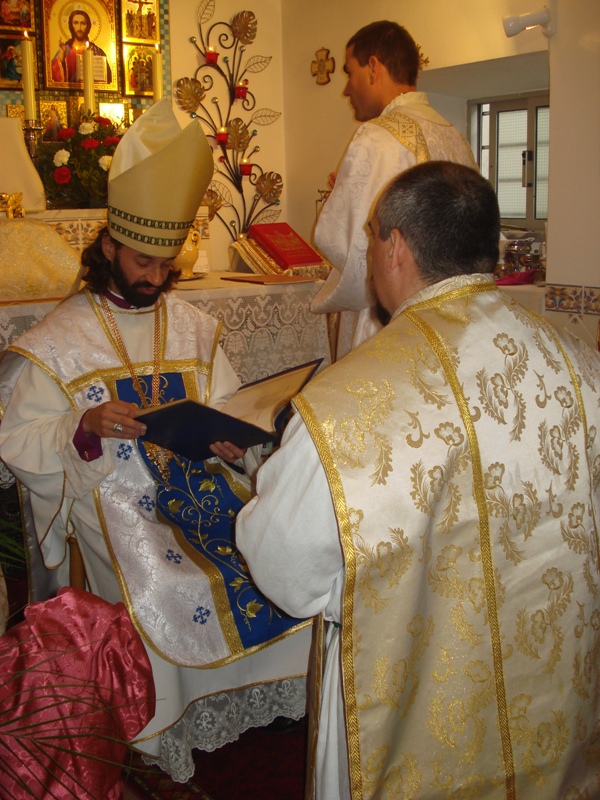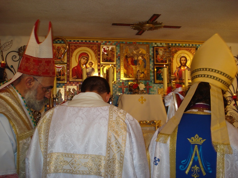 O Padre Humberto Jorge Pereira Rolo (André I da Hispânea) e o Sr. Fernão Marques Gomes (Deposto e reduzido ao Estado Laical em 29 de Junho de 2015), durante a procissão de entrada