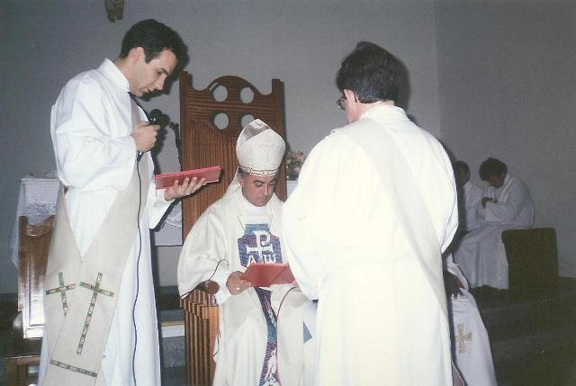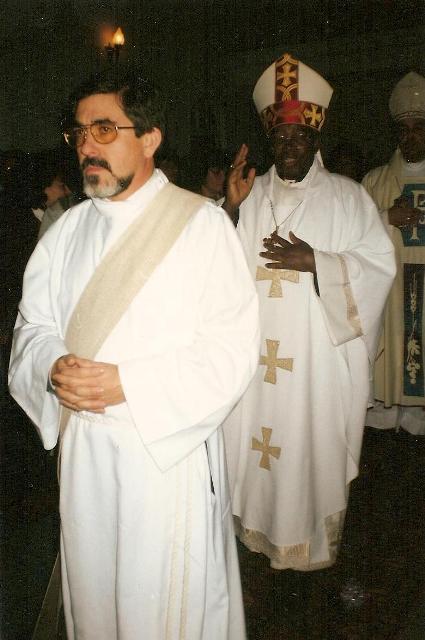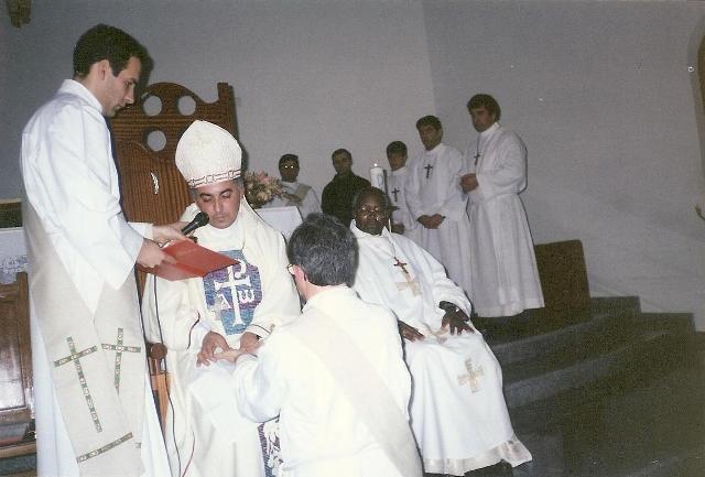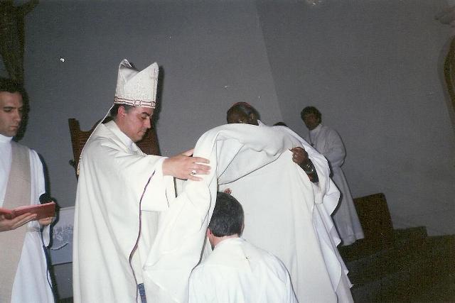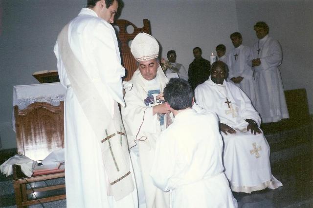 S.E.R. Dom Raposo e S.E.R. Monsenhor Milingo revestindo o Neo-Sacerdote com a Casula Sacerdotal