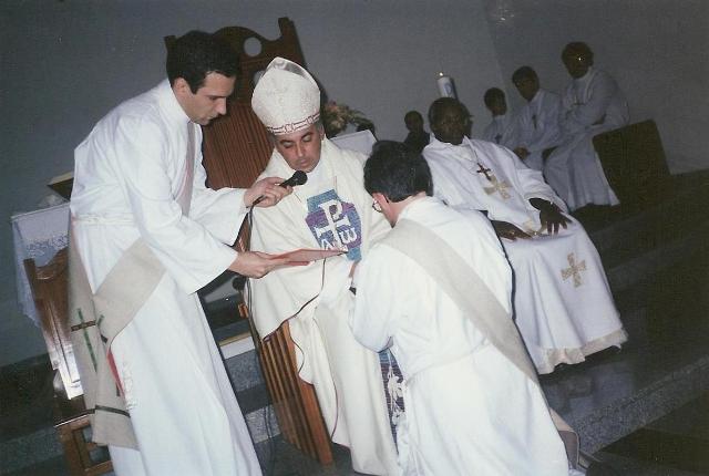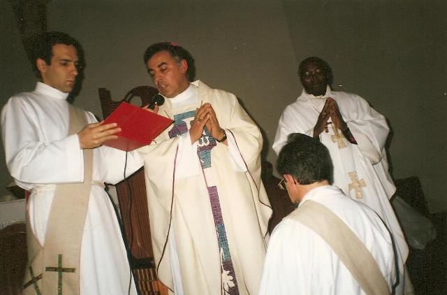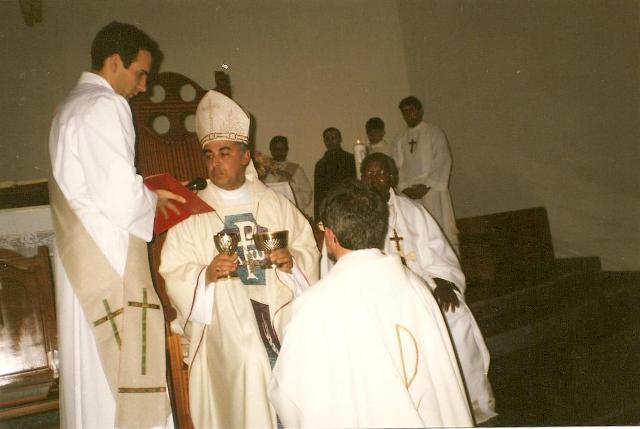 S.E.R. Mons. Emmanuel Milingo impondo suas mãos sobre S.E.R. Dom Luís Gonçalves