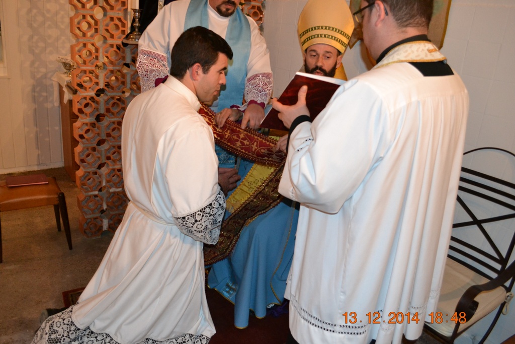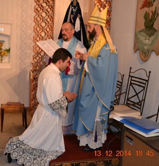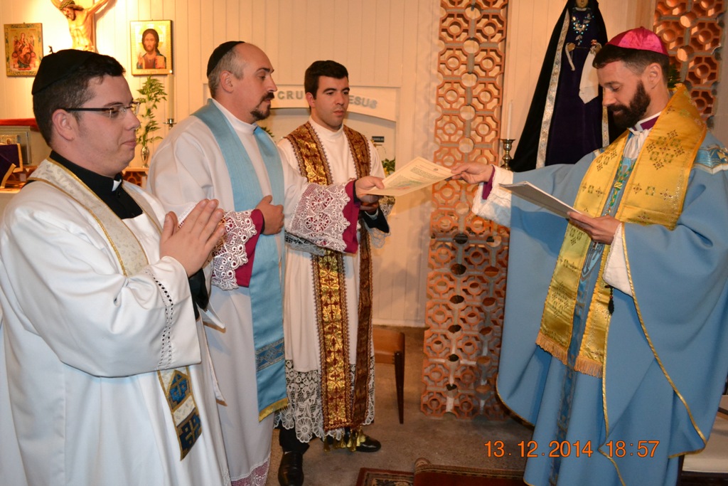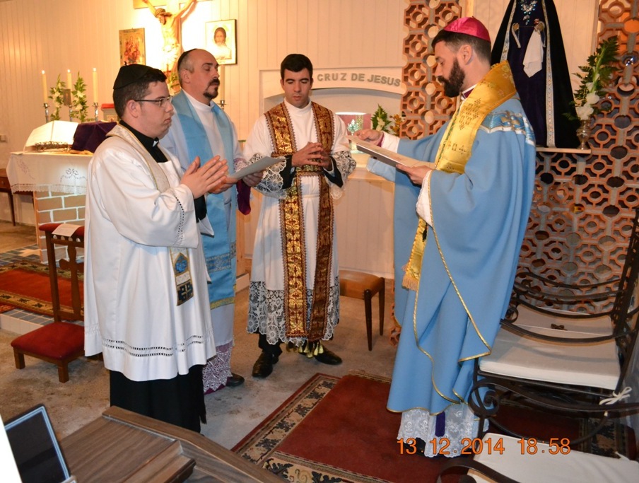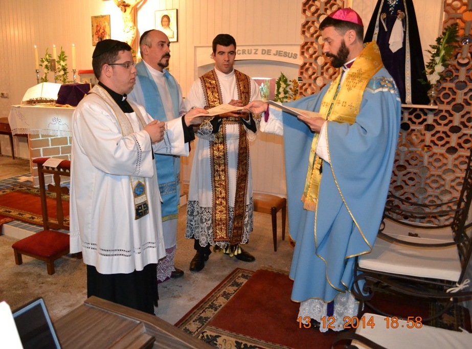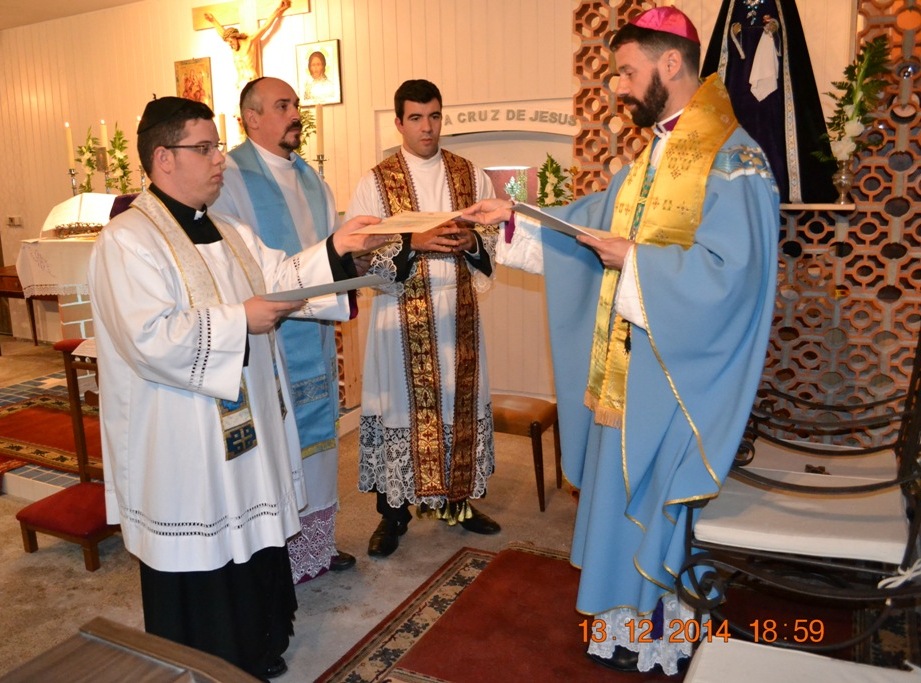 S.B. Dom Paulo Jorge de Laureano (Mar Alexander I da Hispânea), entrega ao Padre-Subdiácono António Manuel Cardoso Sousa, o Decreto da sua Ordenação