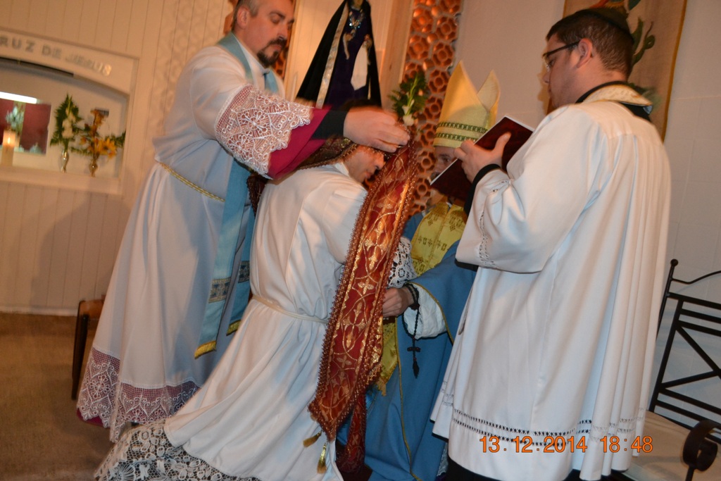 O neo-subdiácono é revestido com a estola segundo o costume dos subdiáconos