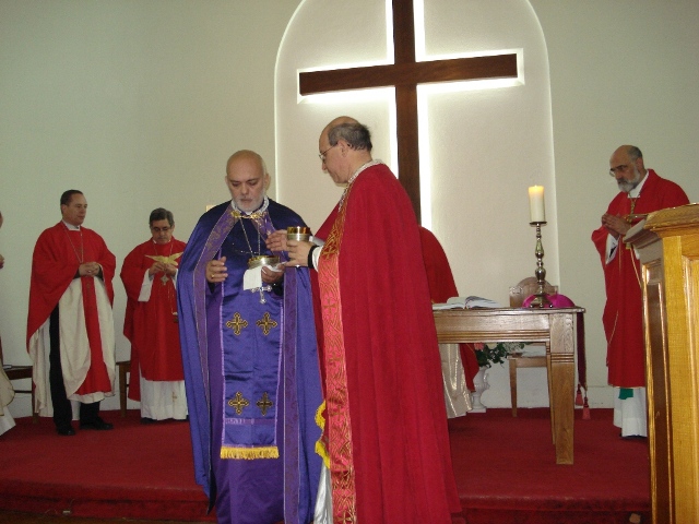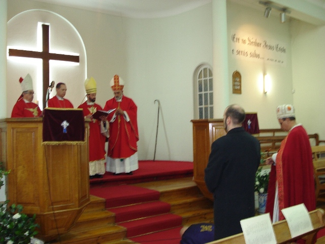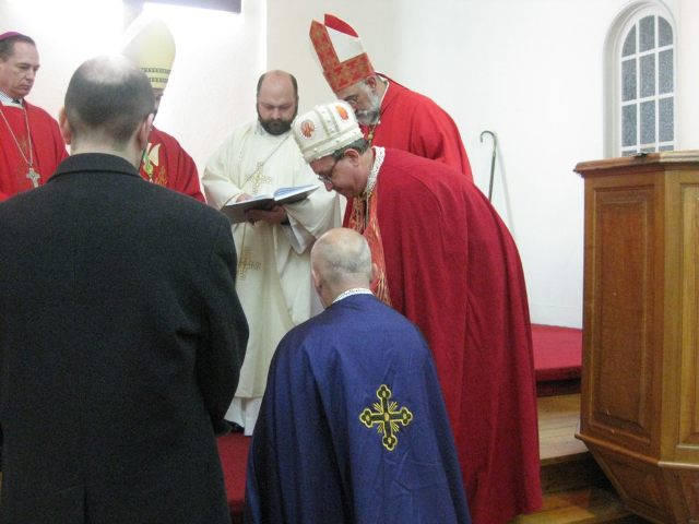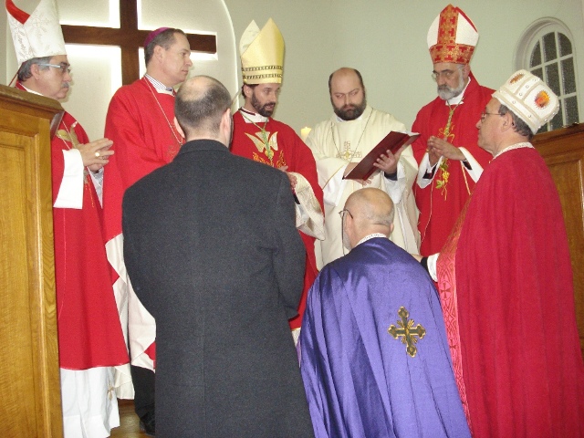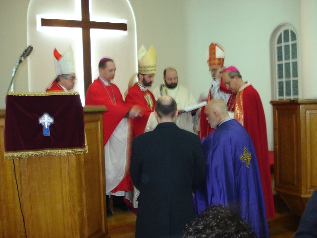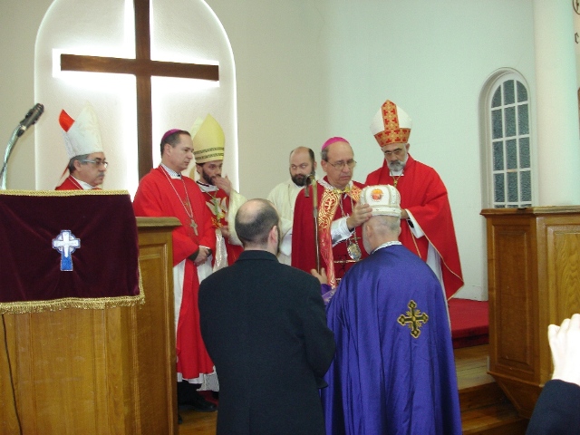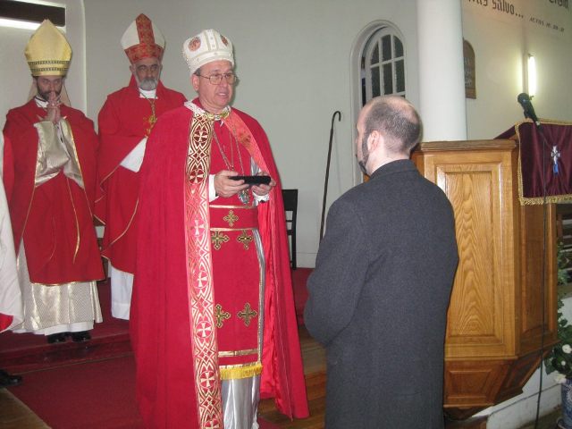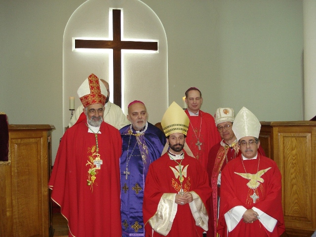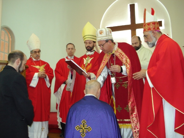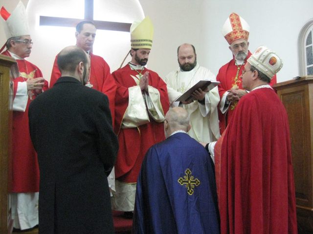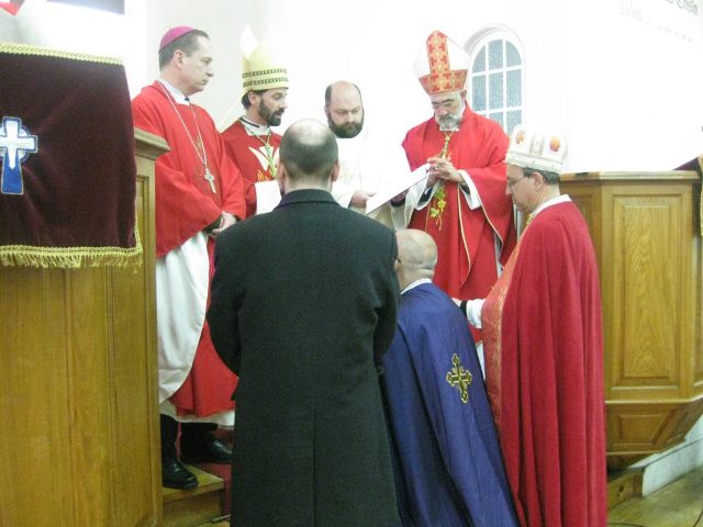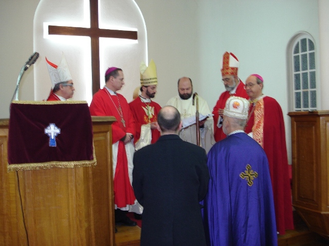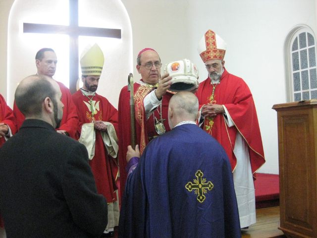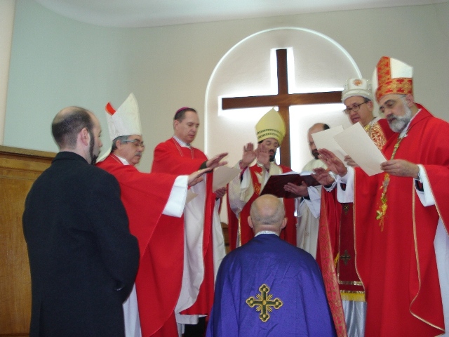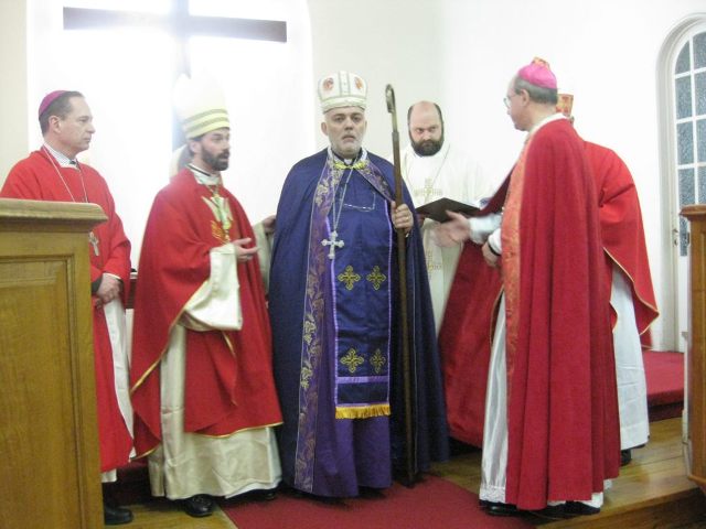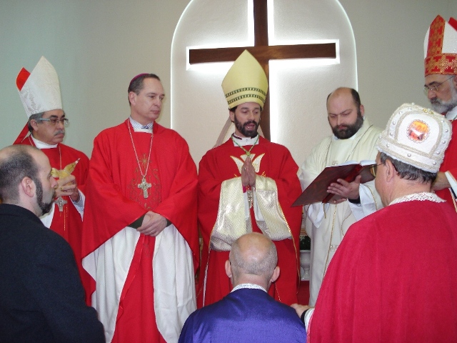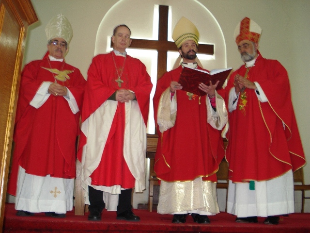 Apresentação do Eleito, S.E.R. Mons. Carlos Alberto Luconi perante o Colégio Episcopal, ladeado por S.E.R. Monsenhor Alfredo Mário Mingolla-Montrezza, Arcebispo de Buenos Aires da Igreja Ortodoxa Bielorrussa Eslava