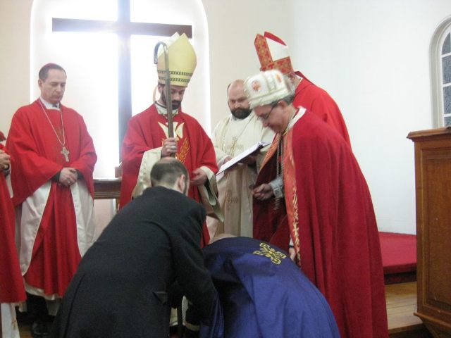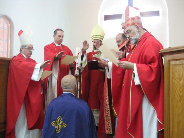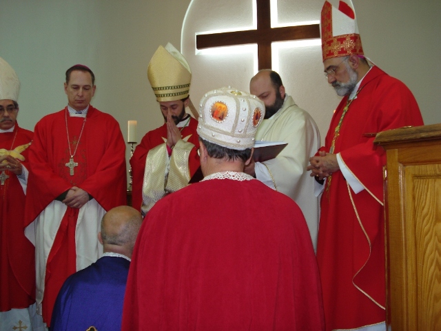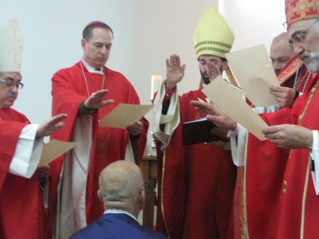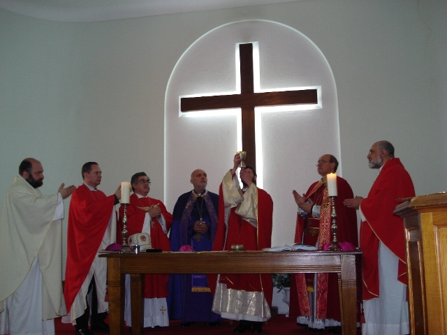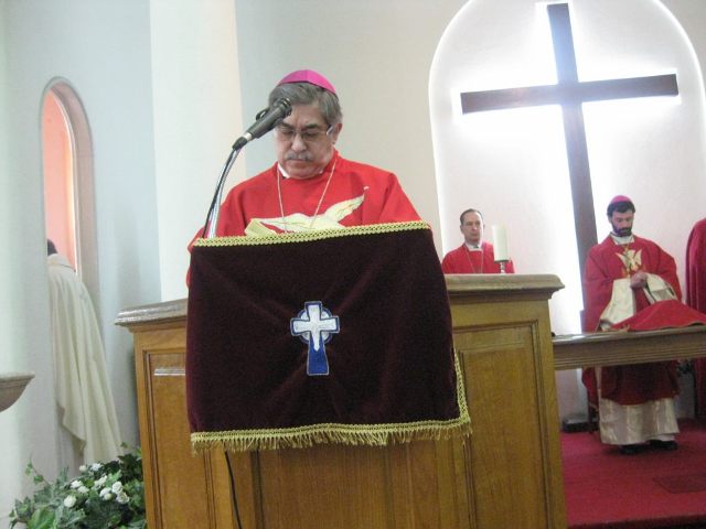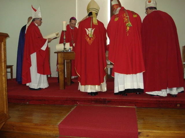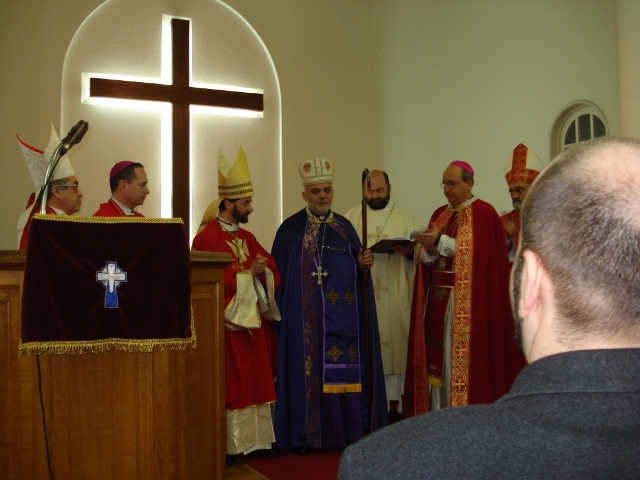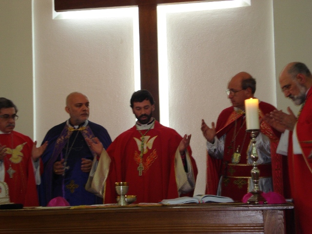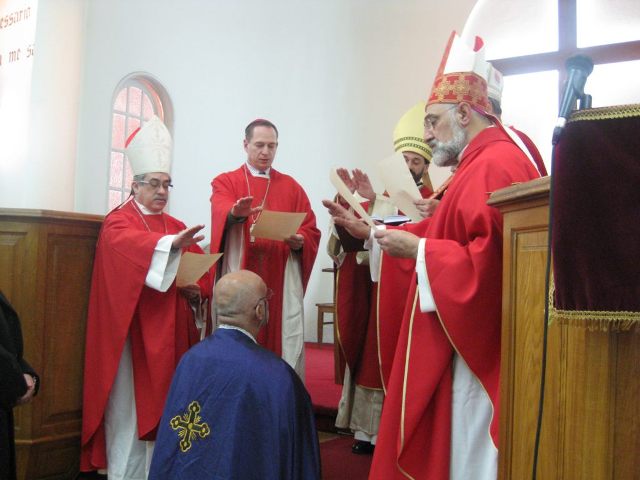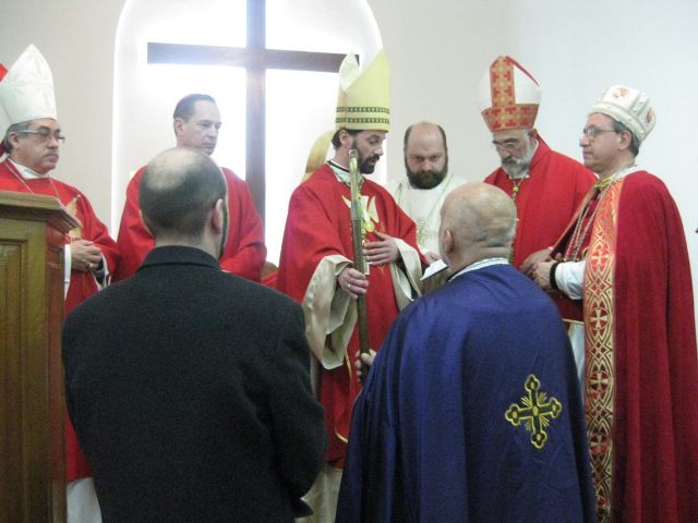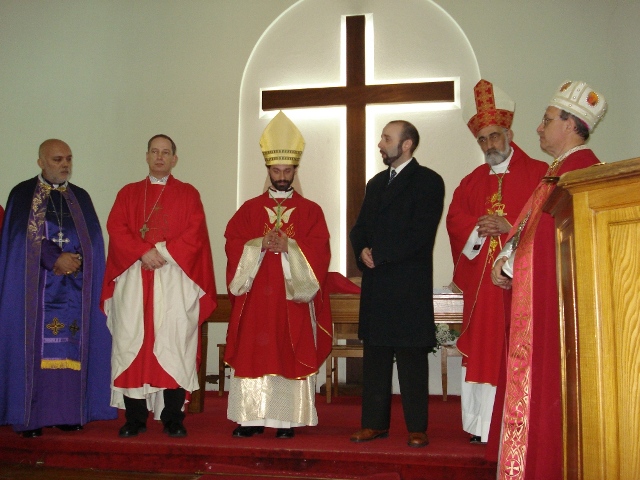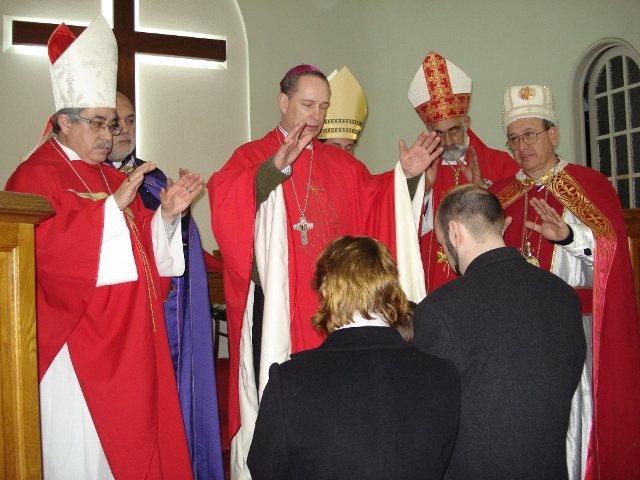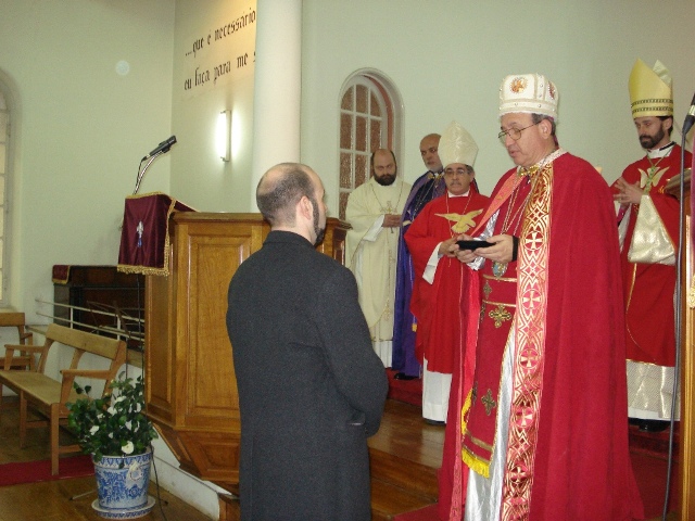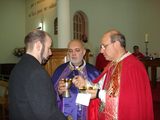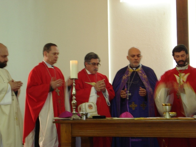 Apresentação do Eleito, S.E.R. Mons. Carlos Alberto Luconi perante o Colégio Episcopal, ladeado por S.E.R. Monsenhor Alfredo Mário Mingolla-Montrezza, Arcebispo de Buenos Aires da Igreja Ortodoxa Bielorrussa Eslava