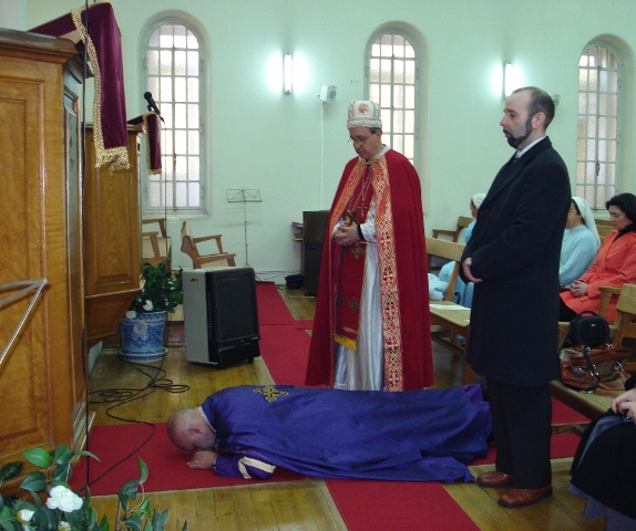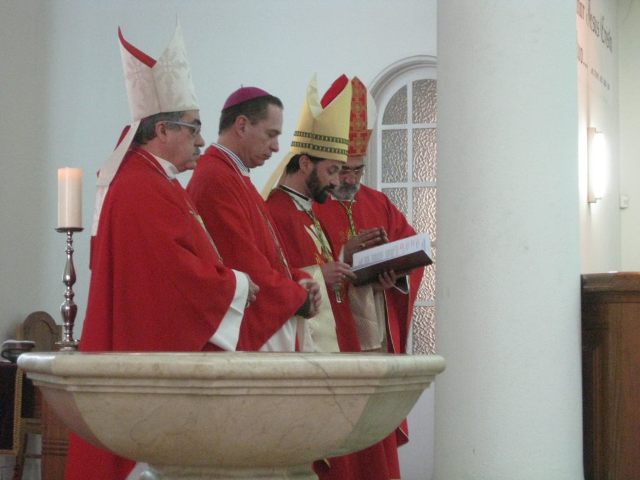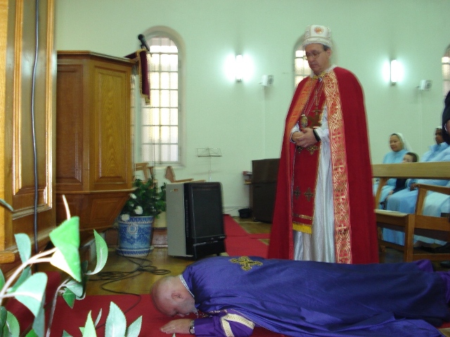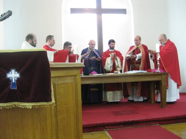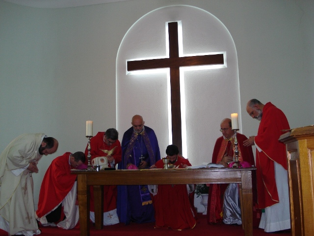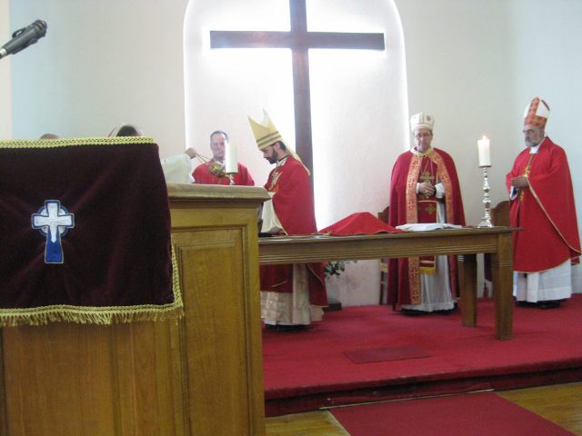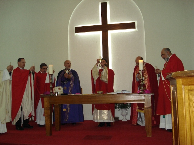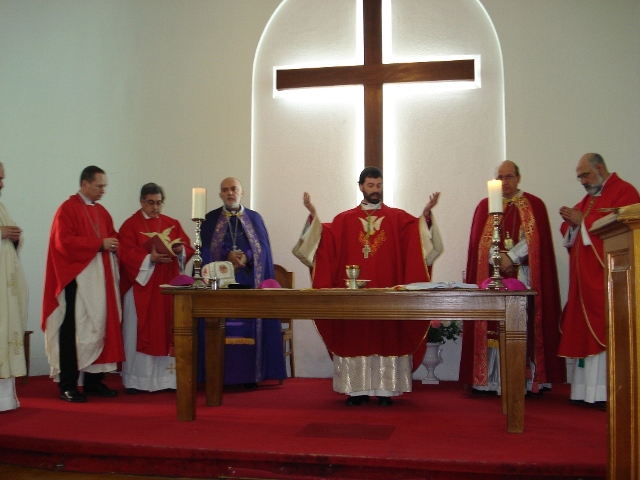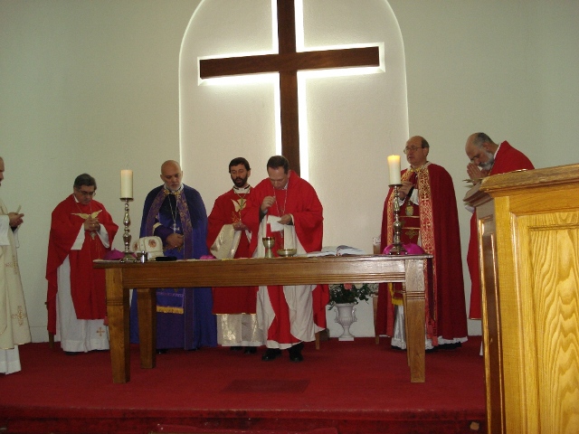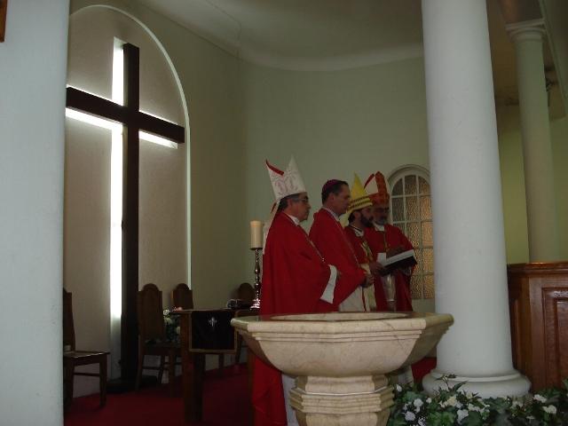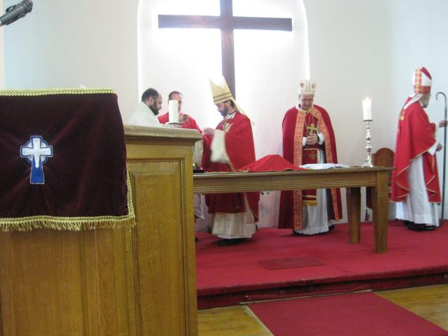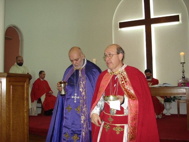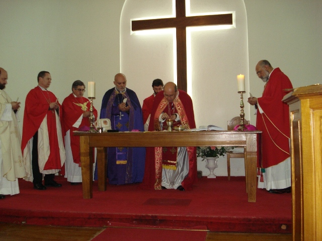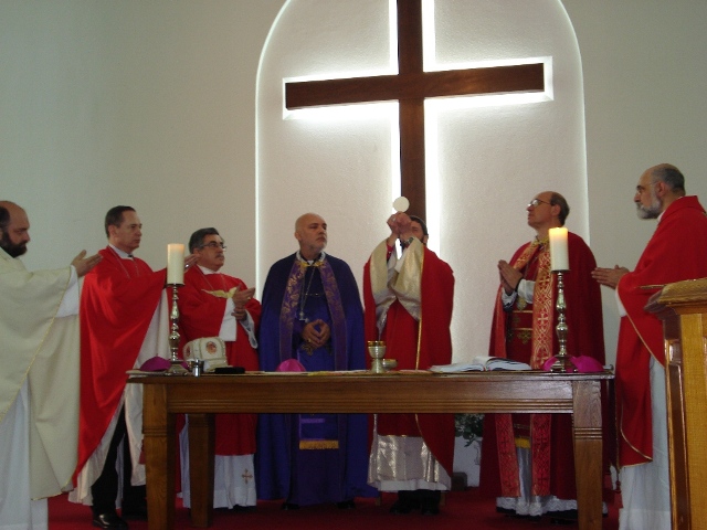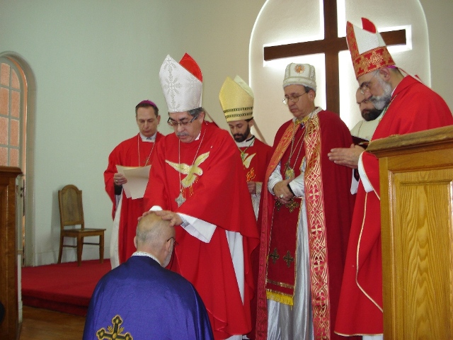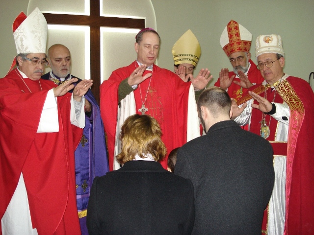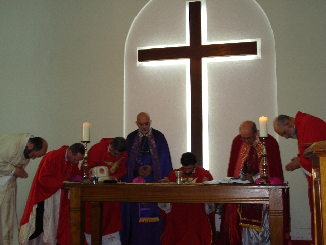 Apresentação do Eleito, S.E.R. Mons. Carlos Alberto Luconi perante o Colégio Episcopal, ladeado por S.E.R. Monsenhor Alfredo Mário Mingolla-Montrezza, Arcebispo de Buenos Aires da Igreja Ortodoxa Bielorrussa Eslava