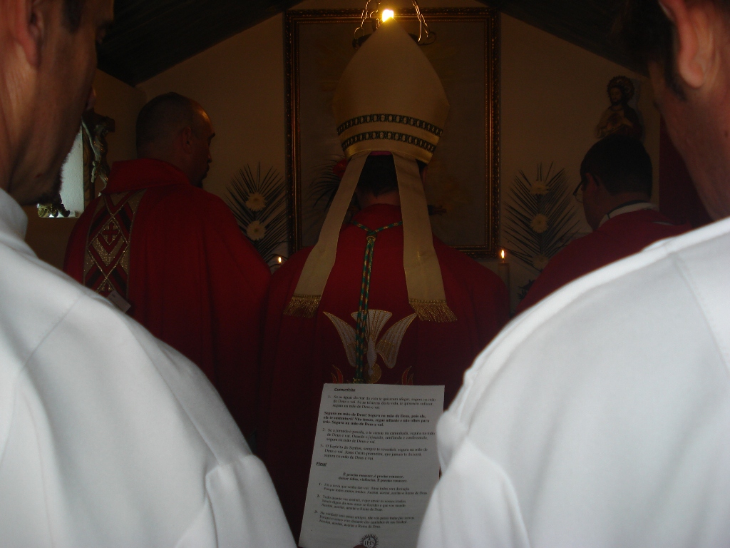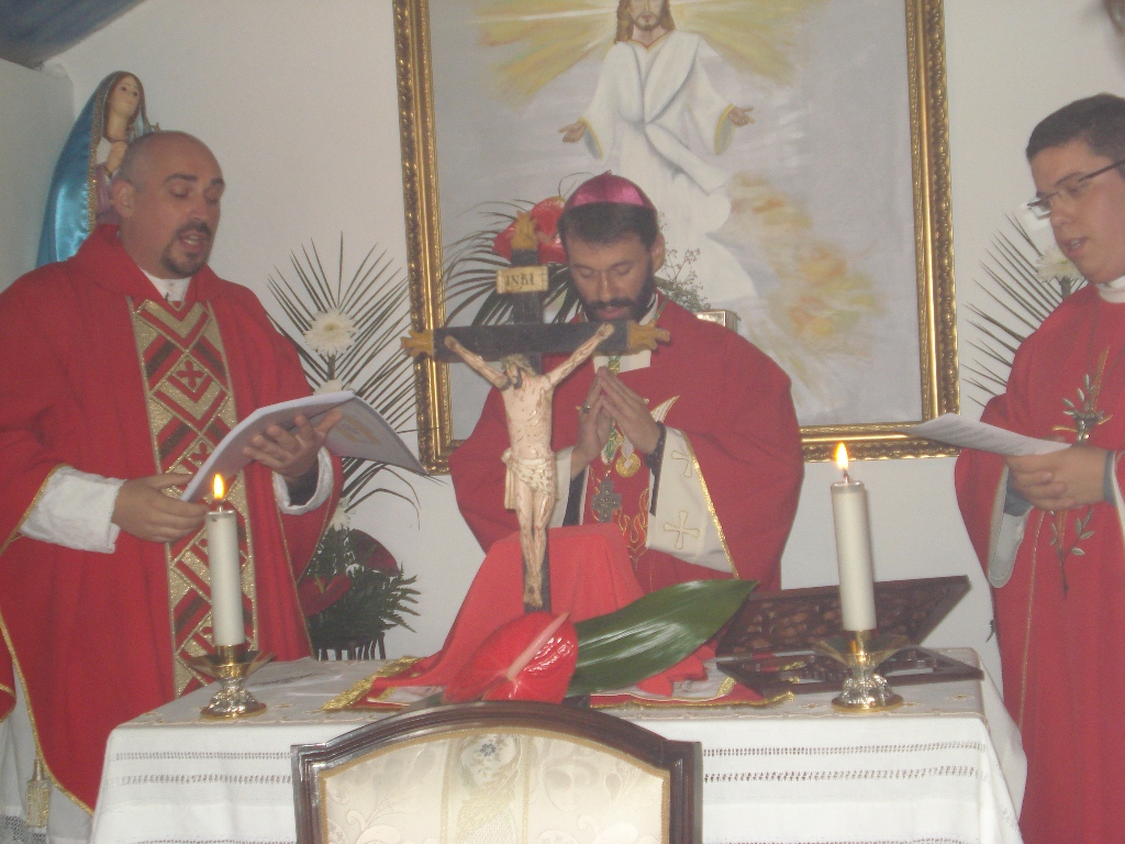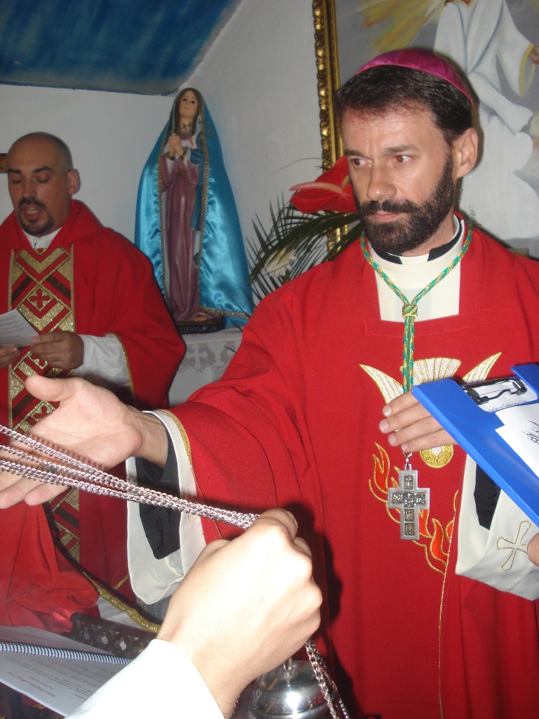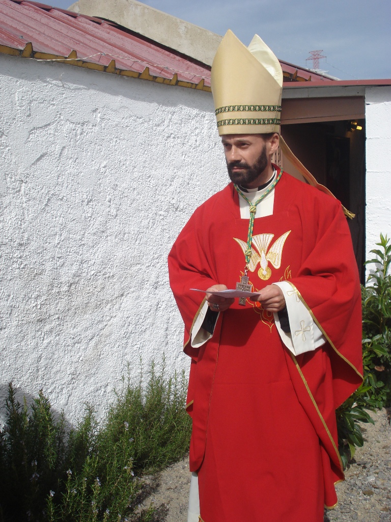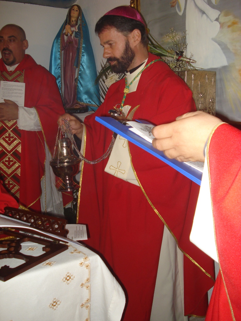 S.B. Dom Paulo Jorge de Laureano (Mar Alexander I da Hispânea), Arcebispo de Lisboa e Primaz Katholikos, acompanhado pelo Rev. Padre César Manuel da Silva Barata, Reitor da Comunidade de Castelo Branco (centro), e pelo Rev. Padre Humberto Jorge Pereira Rolo (André I da Hispânea).