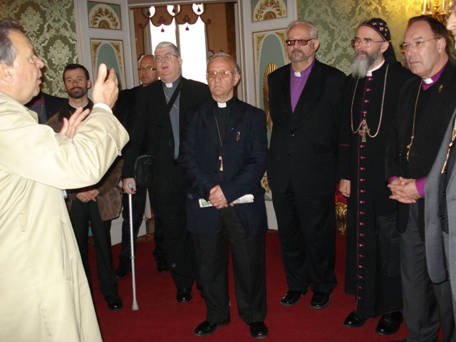S.E.R. Mons. Nicolas de Paris – Eglise Orthodoxe Autonome de France, falando com o guia e S.B. o Patriarca Moses de Kiev - Ecumenical Ukrainian Autocephalous Orthodox Church Canonical (de costas)