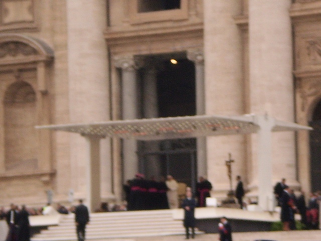 Panorâmica do Altar onde S.S. Bento XVI está recebendo os cumprimentos de alguns bispos