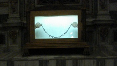 Nesta custódia de bronze dourado, que está colocada entre o sepulcro e o Altar Papal, encontra-se guardada uma corrente, composta de nove anéis. De uma antiquíssima tradição (segundo a Igreja Católica Romana) se afirma que é parte pertencente à corrente que obrigou forçadamente o Apóstolo Paulo a viver na condição de prisioneiro em Roma