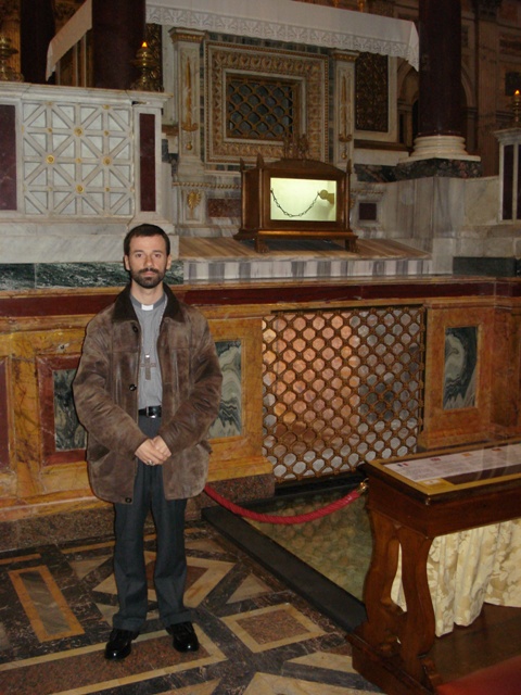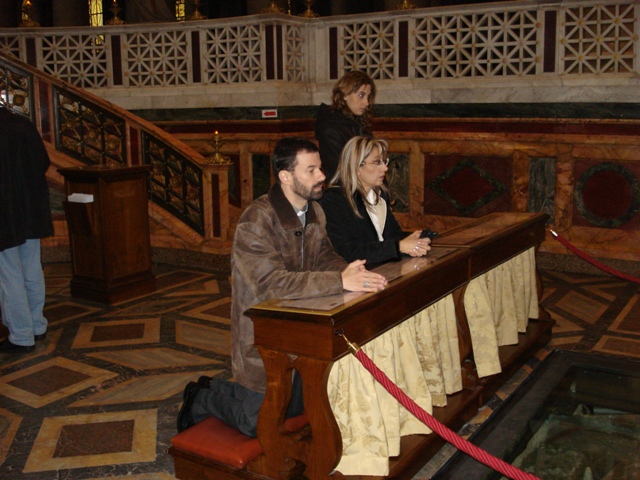S.B. Dom Paulo de Laureano orando junto ao sepulcro