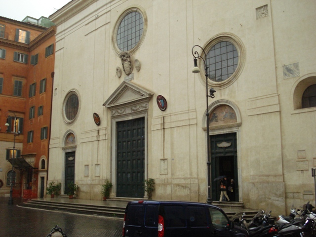 Fachada central da Basílica que é considerada a única Basílica gótica de Roma e, segundo uma antiga tradição, está construída sobre um templo pagão dedicado à deusa Minerva