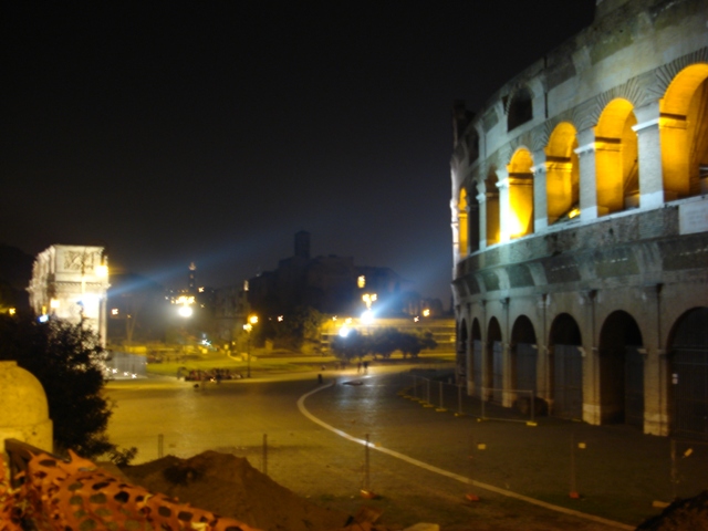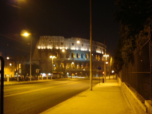 Panorâmica nocturna do Coliseu de Roma, também conhecido como Anfiteatro Flaviano Roma, que em 07 de Julho de 2007 foi eleita umas das "Sete maravilhas do mundo moderno"