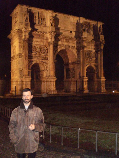 S.B. Dom Paulo junto ao Arco de Constantino que é um arco triunfal em Roma, que foi erigido para comemorar a vitória de Constantino sobre Maxêncio na Batalha da Ponte Mílvio, no ano 312 AD.