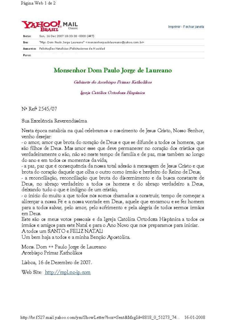 Cartas e Emails enviados por S.B. Dom Paulo Jorge de Laureano