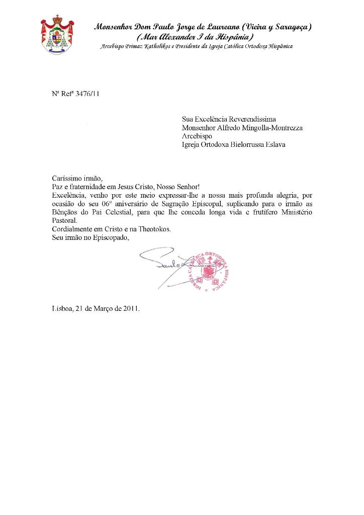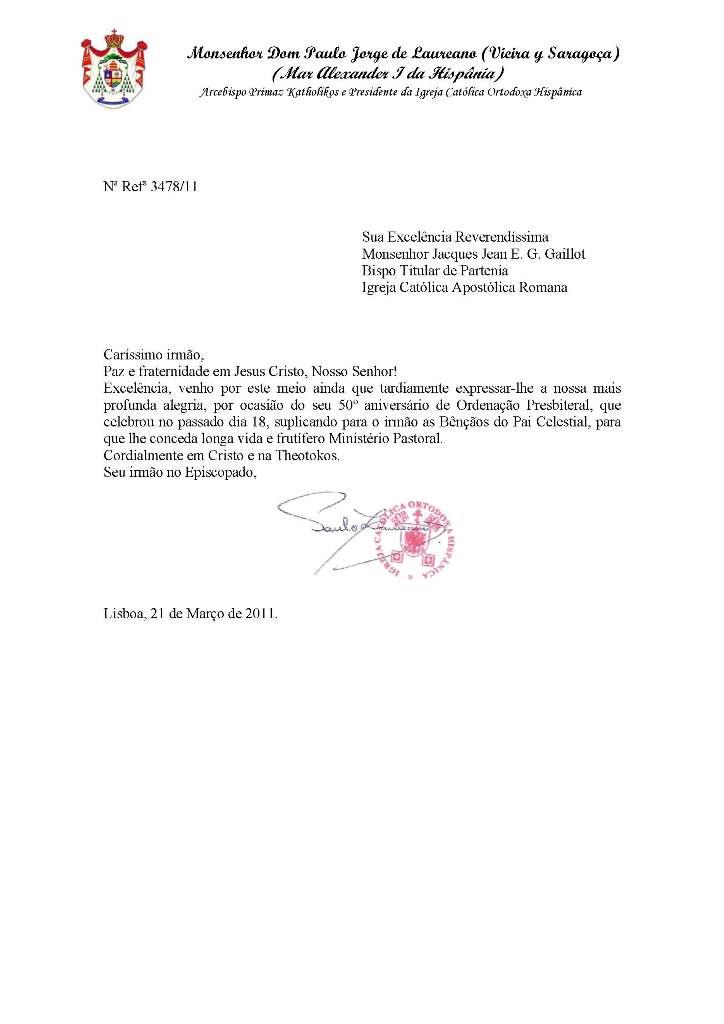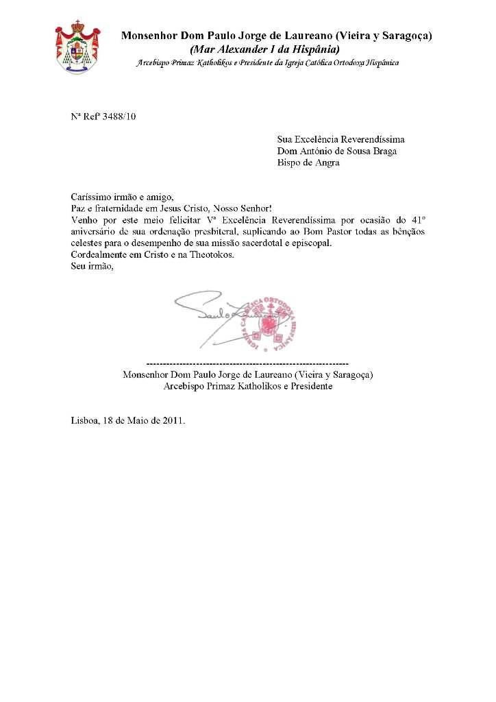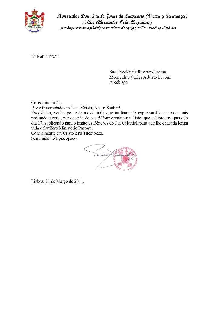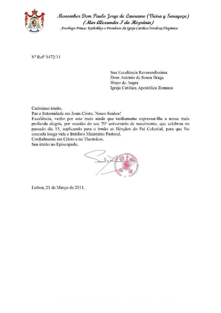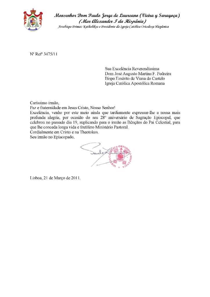Cartas e Emails enviados por S.B. Dom Paulo Jorge de Laureano