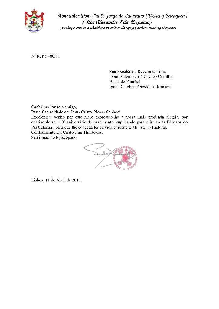 Bispo do Funchal - Portugal - Igreja Católica Apostólica Romana - 11 de Abril de 2011