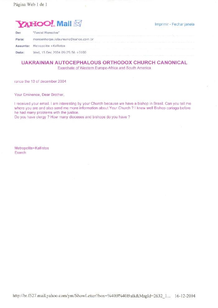 da Igreja Ortodoxa Autocéfala Ucraniana - 15 de Dezembro de 2004