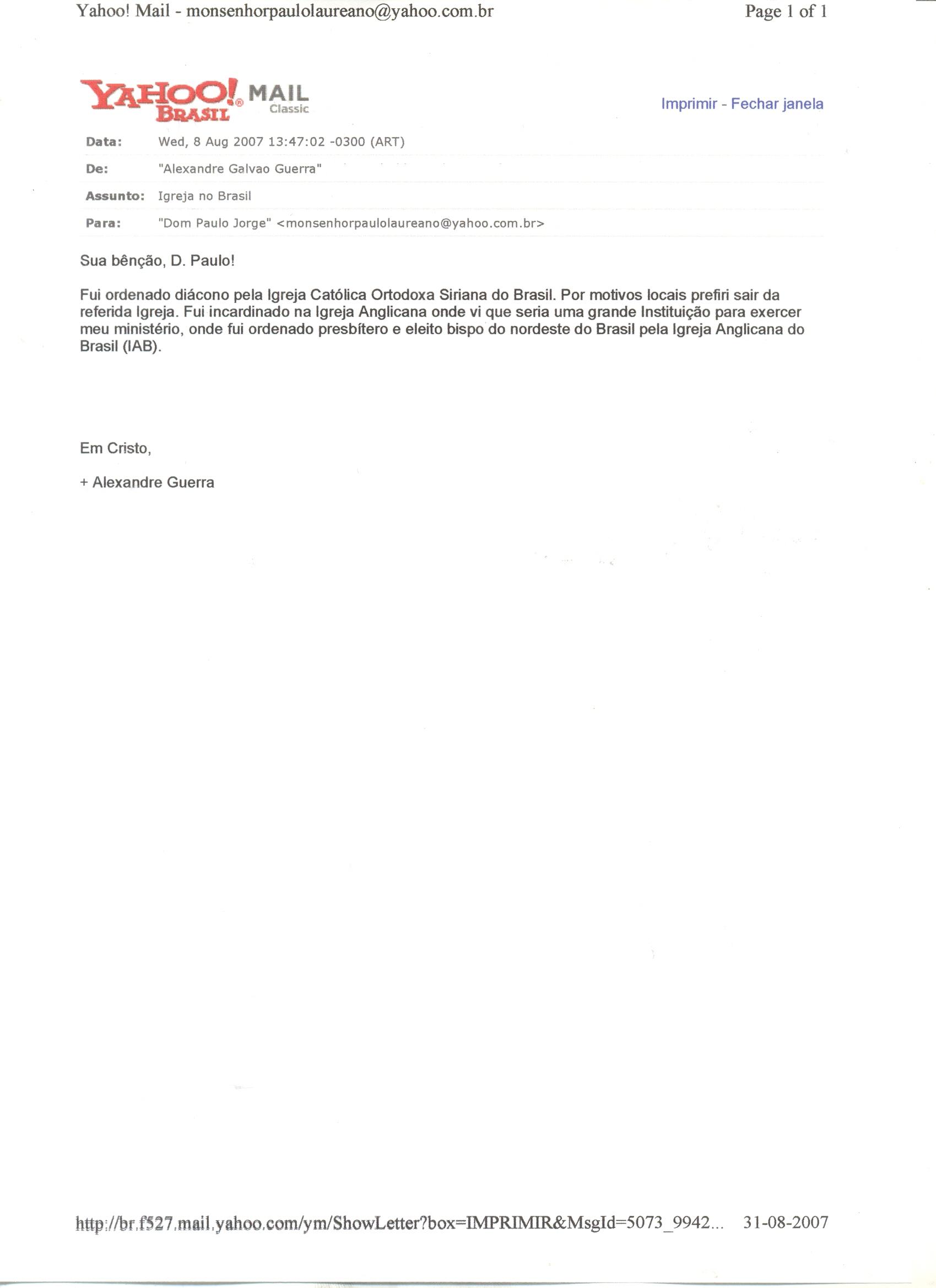 Igreja Anglicana do Brasil - 08 de Agosto de 2007