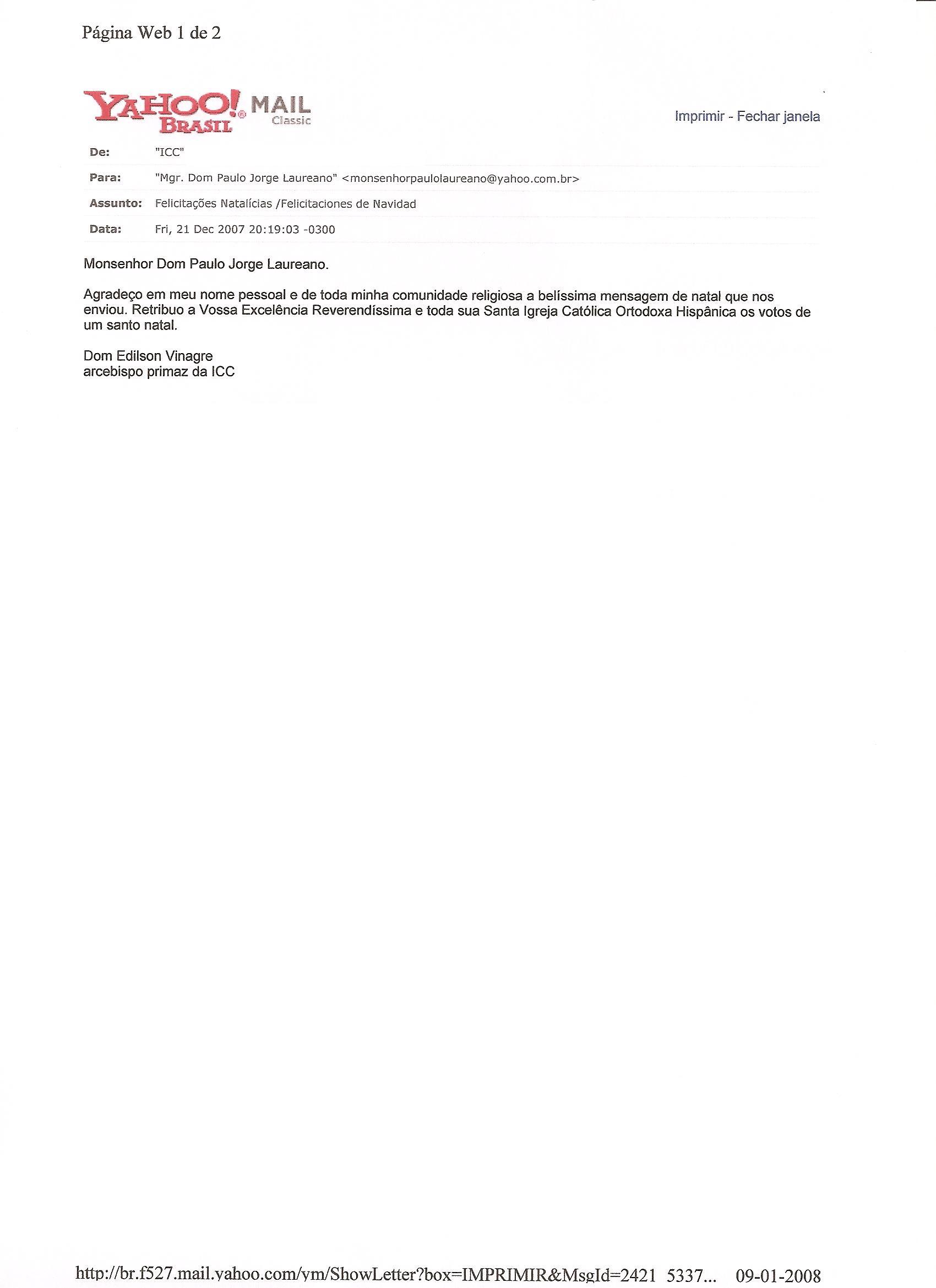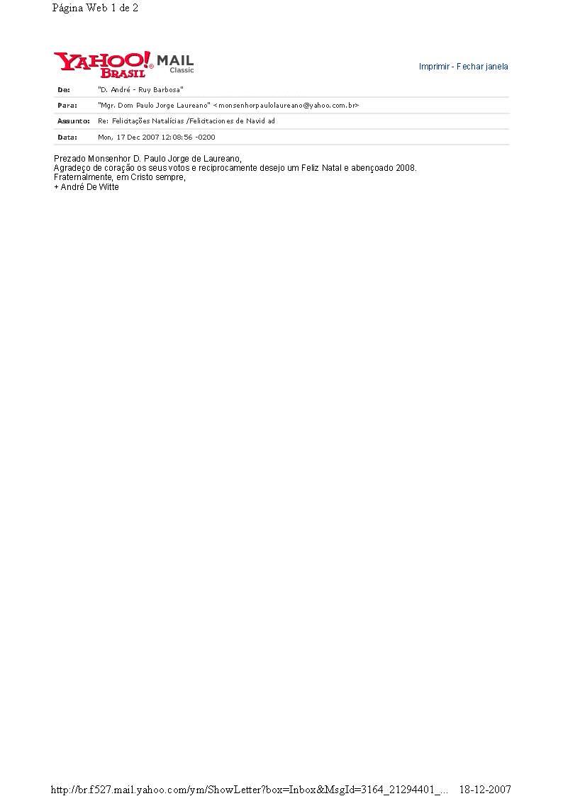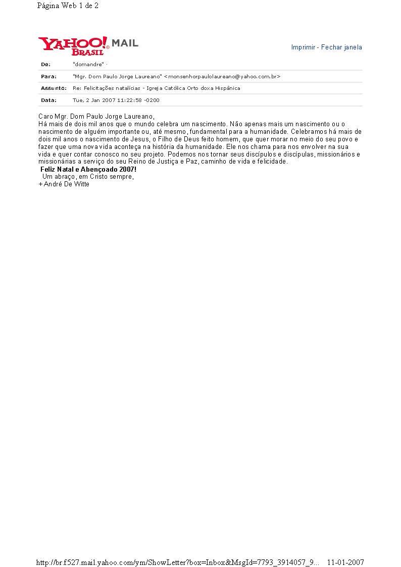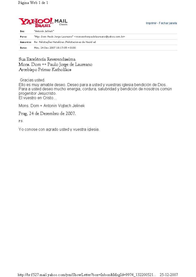 Cartas e Emails recebidos por S.B Dom Paulo Jorge de Laureano
