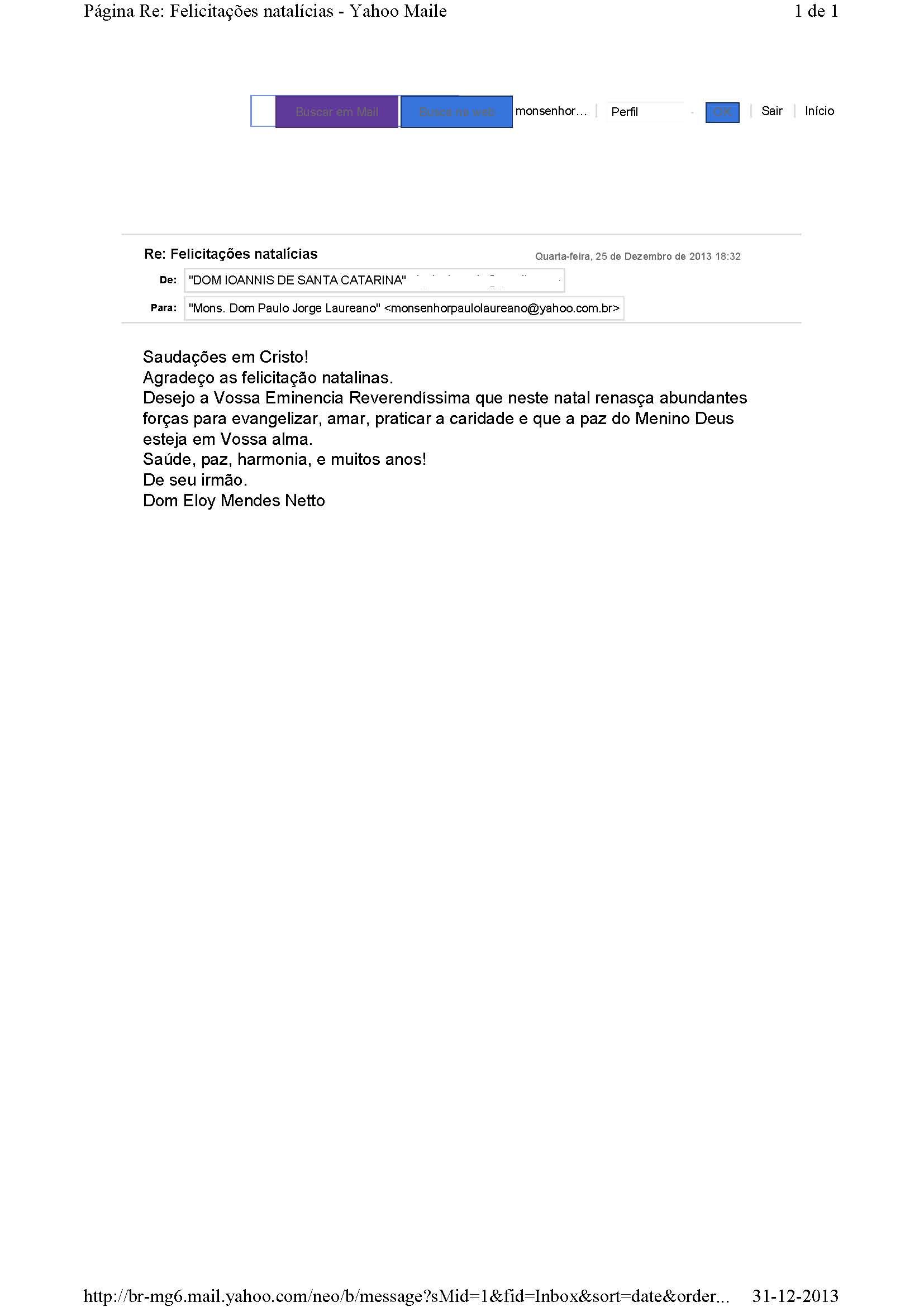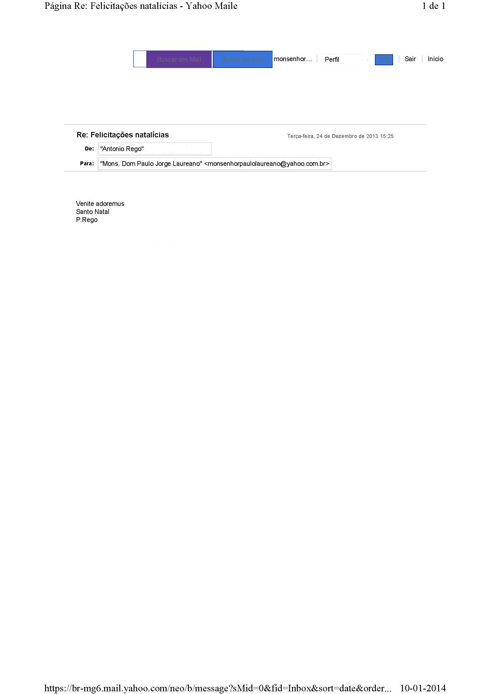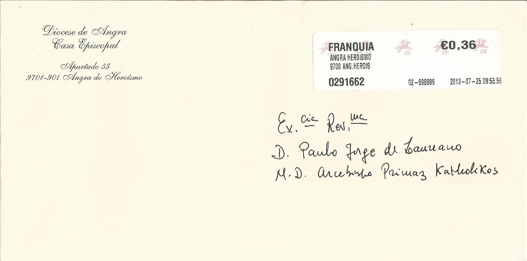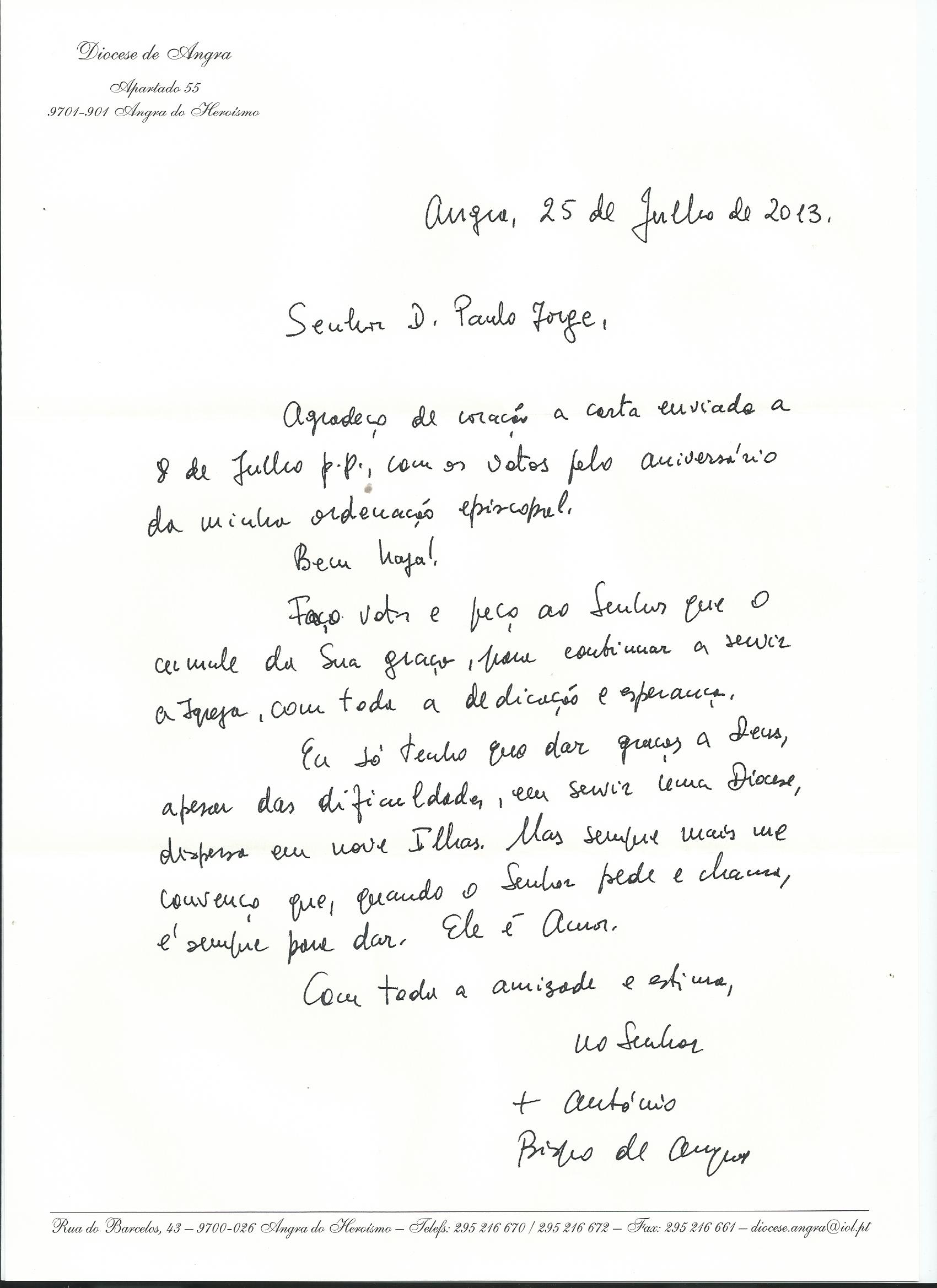 Correspondência recebida por S.B. Dom Paulo Jorge de Laureano