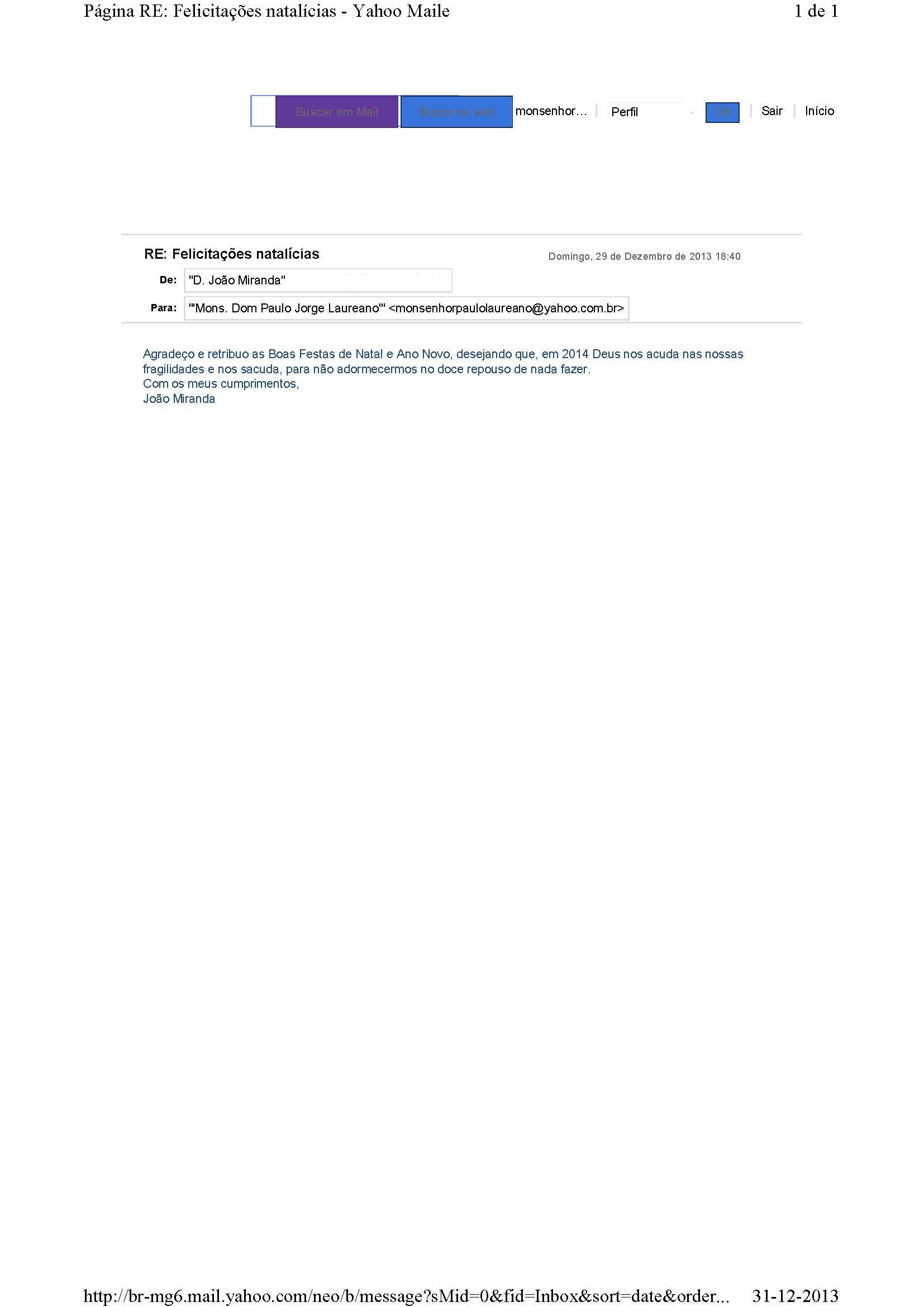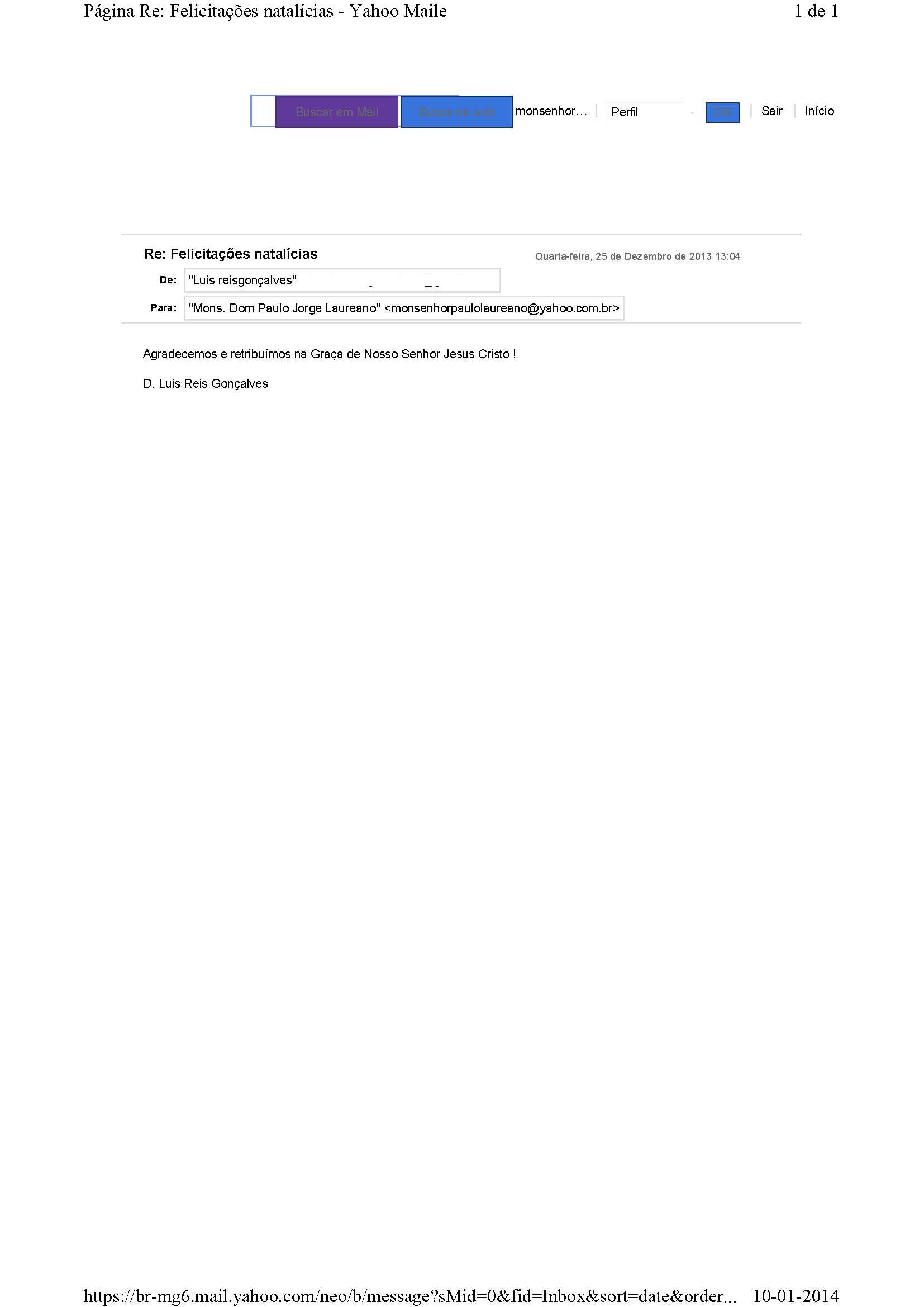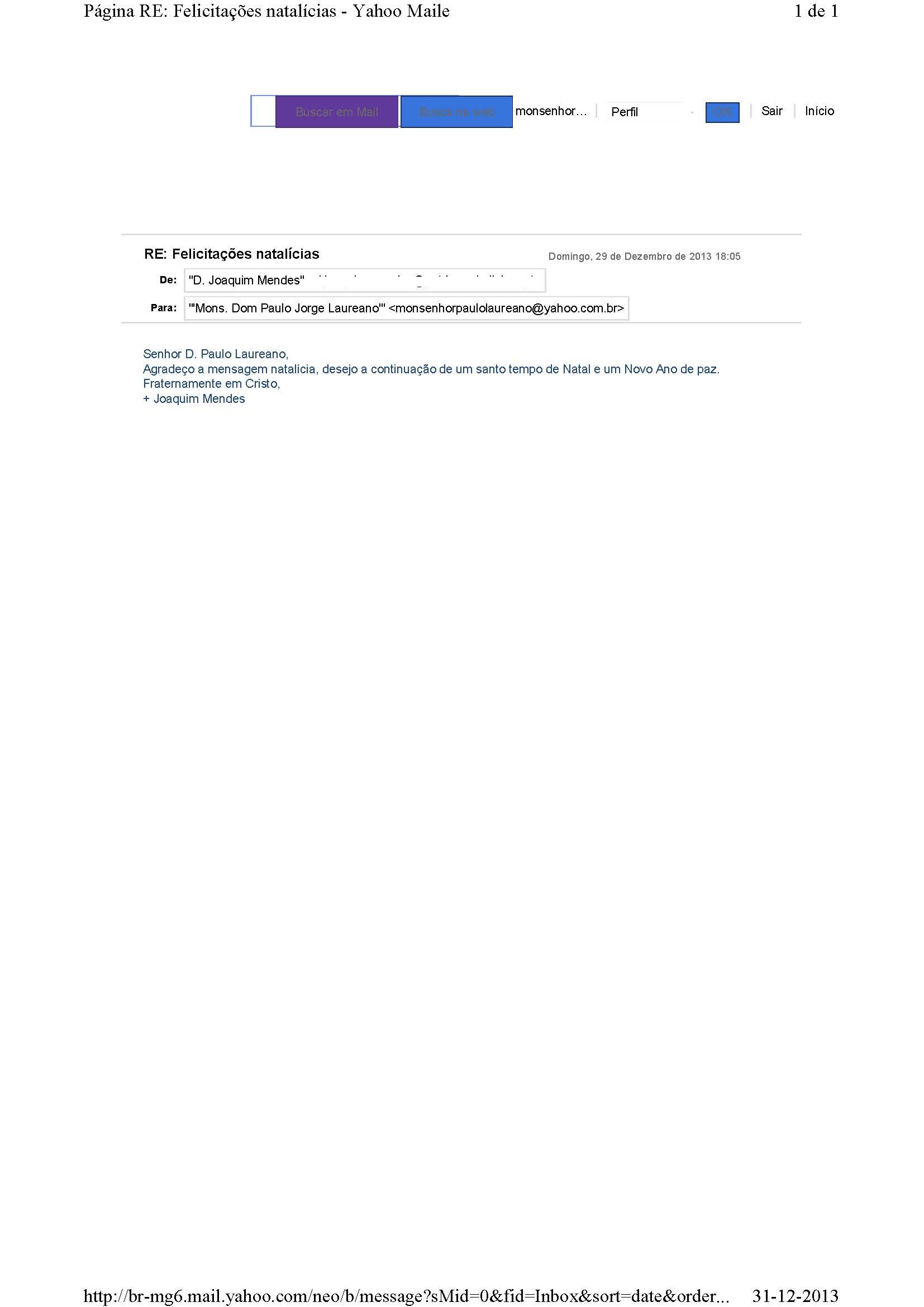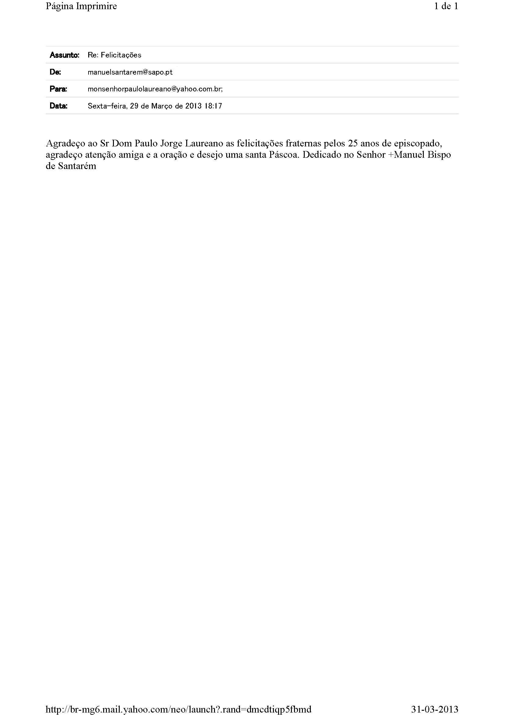 Correspondência recebida por S.B. Dom Paulo Jorge de Laureano