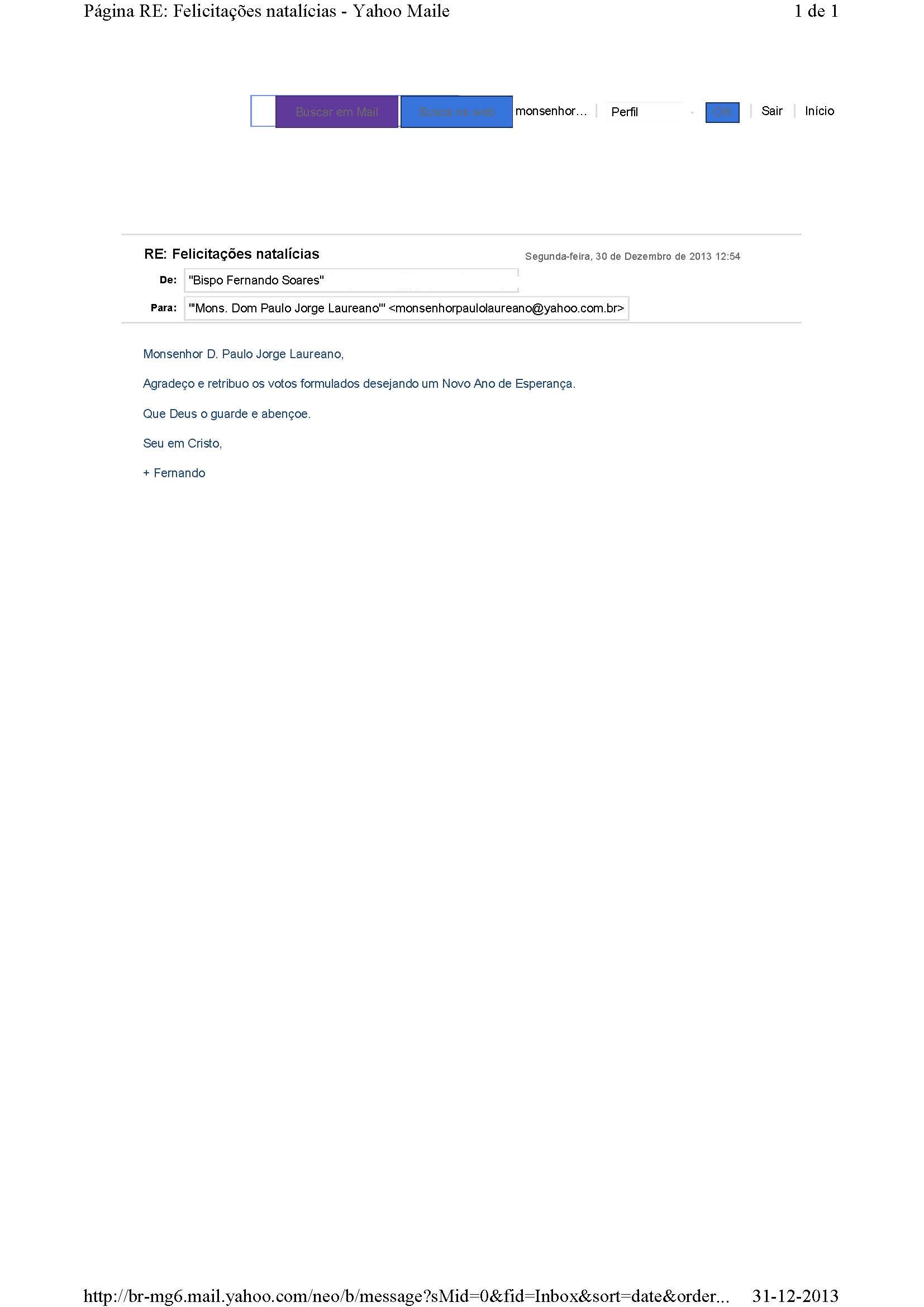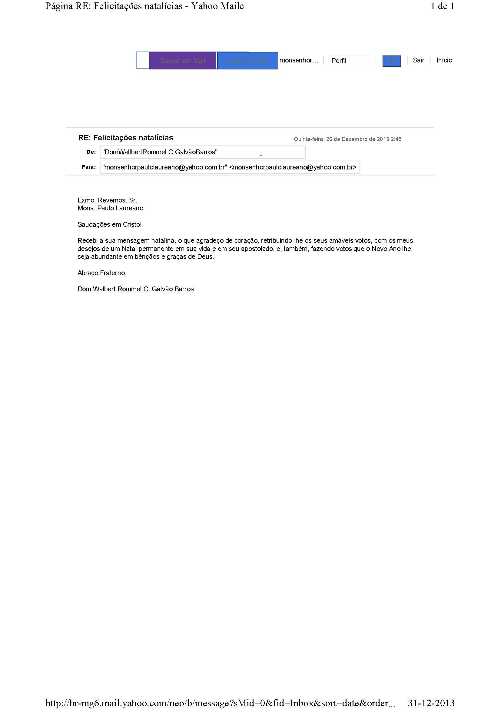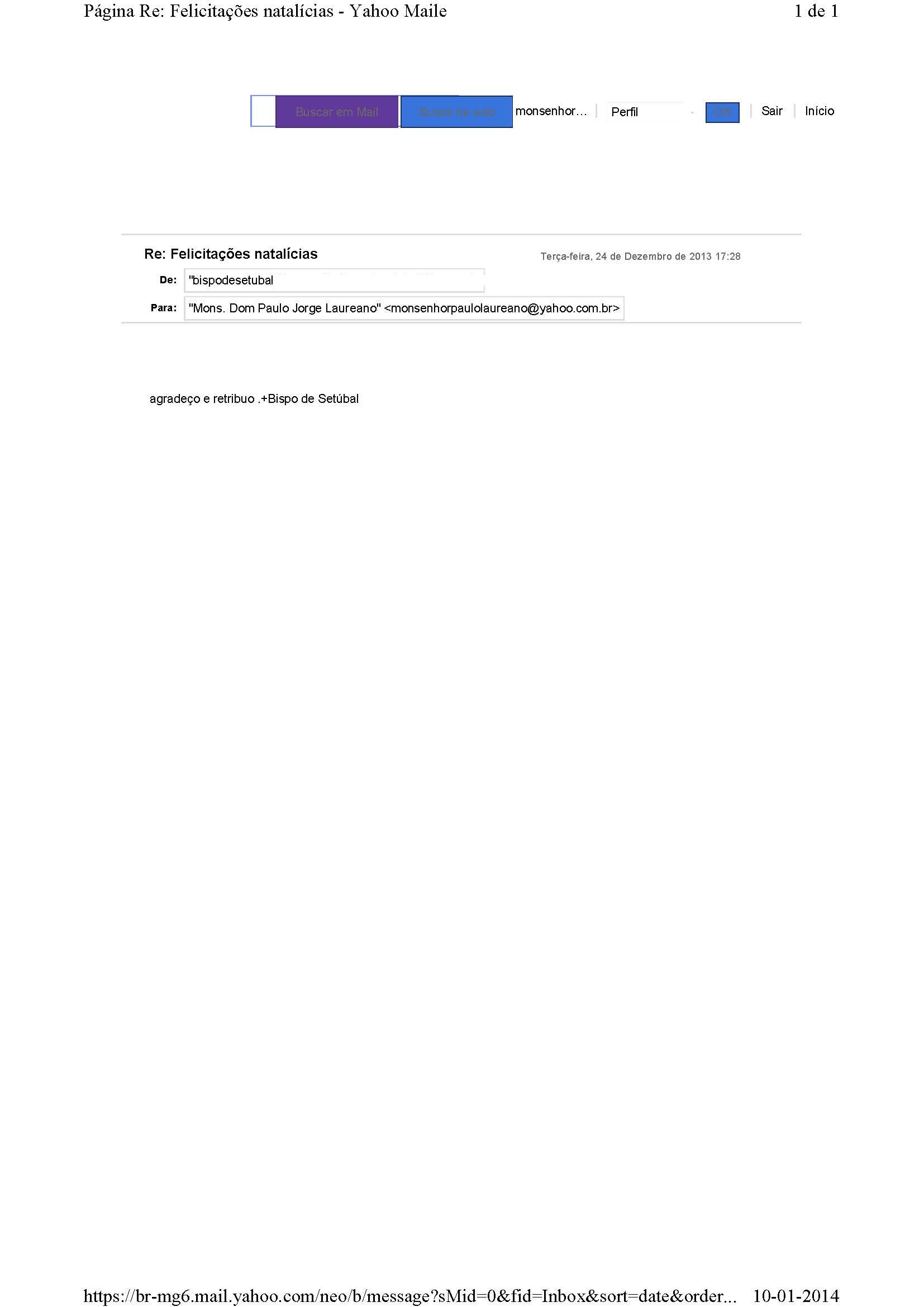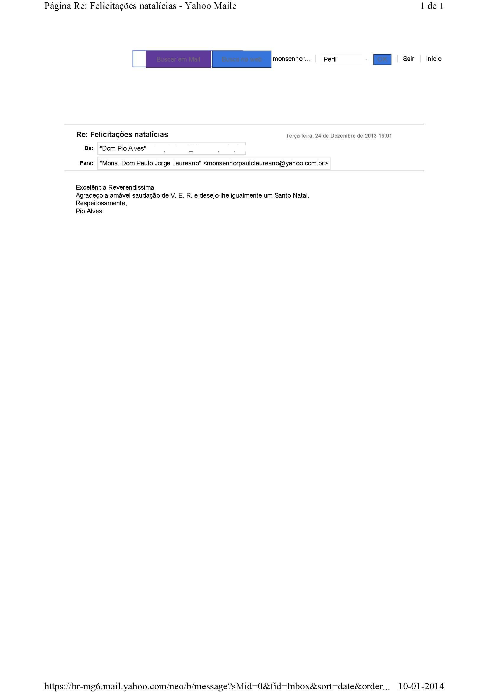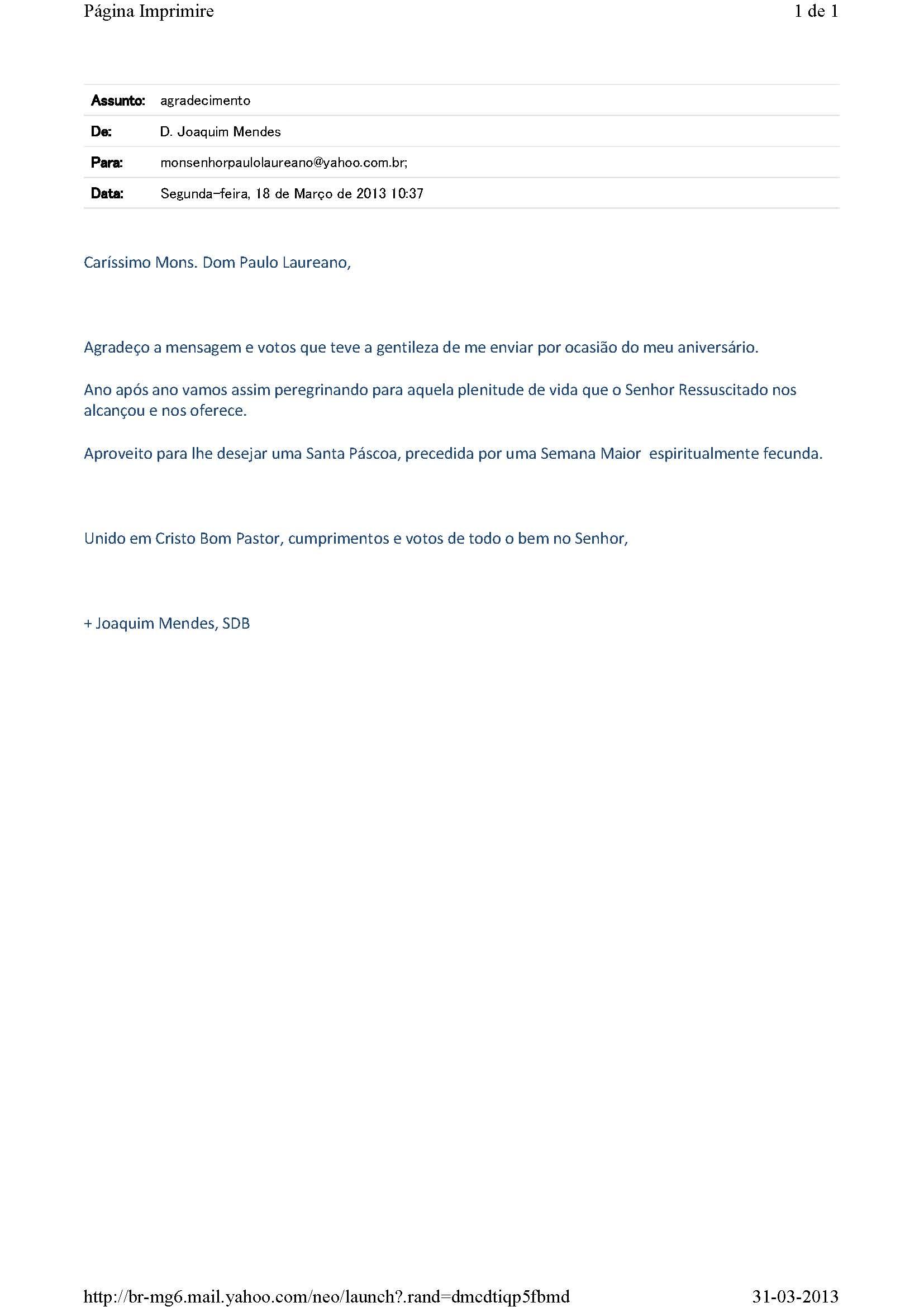 Correspondência recebida por S.B. Dom Paulo Jorge de Laureano