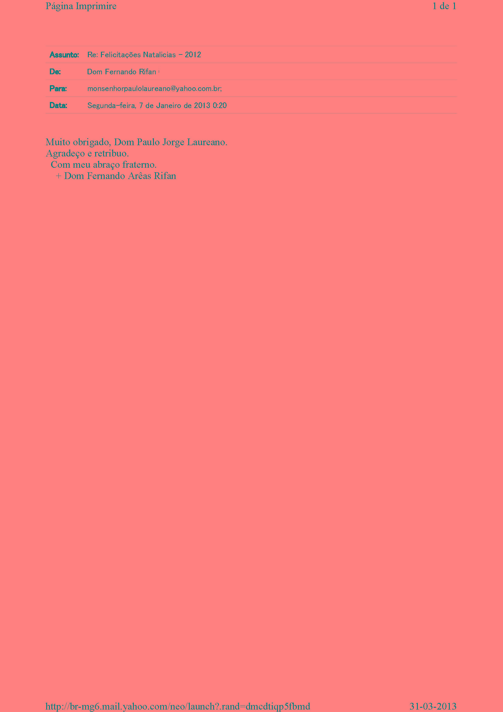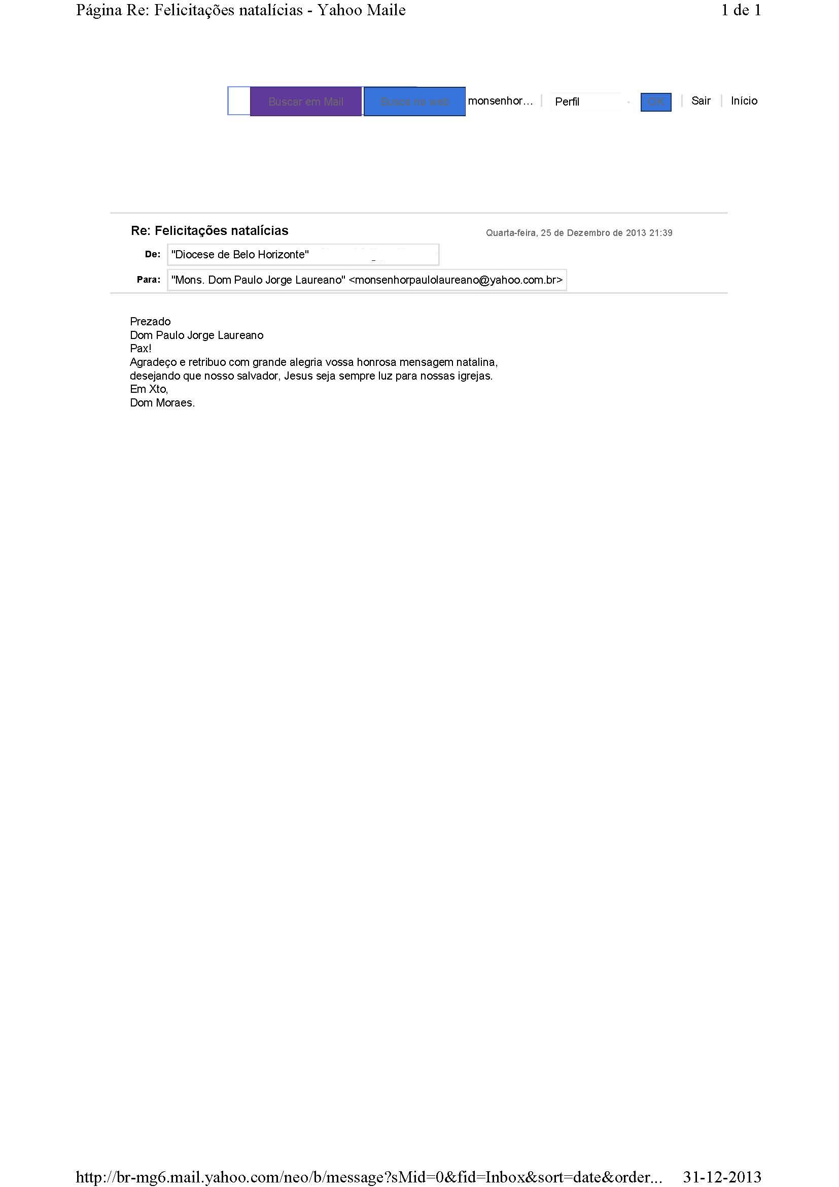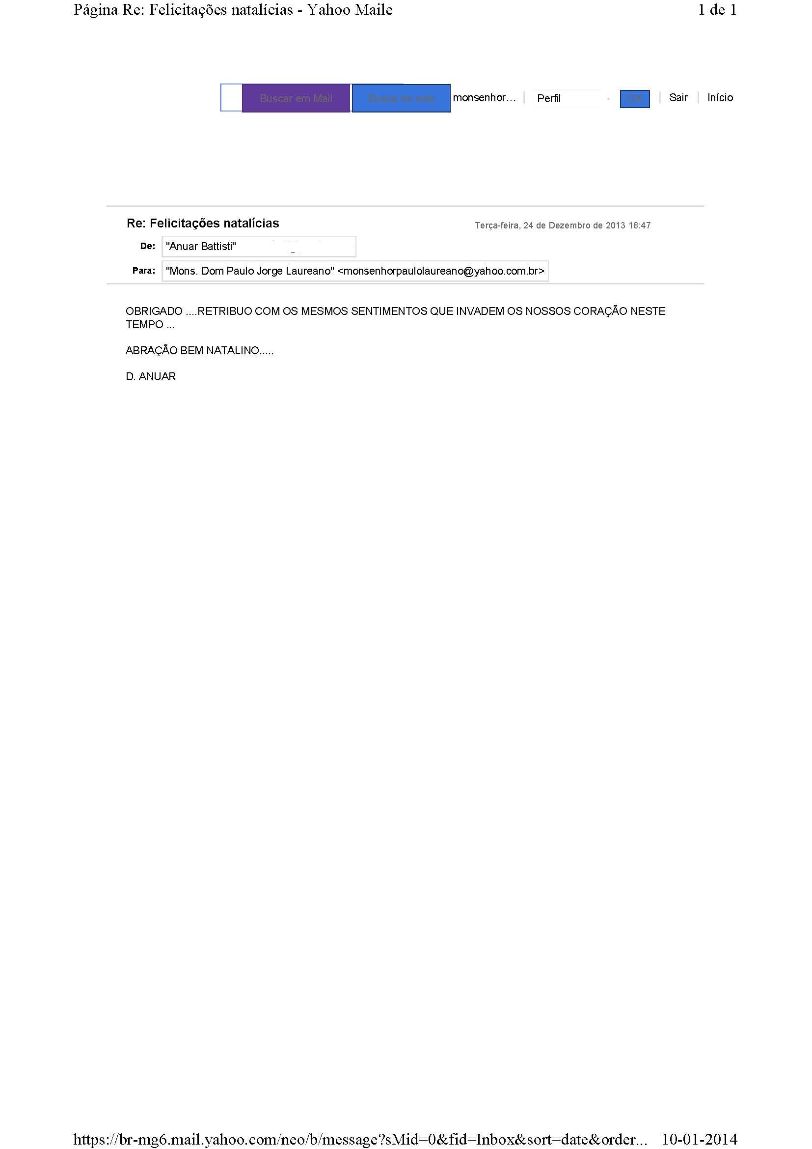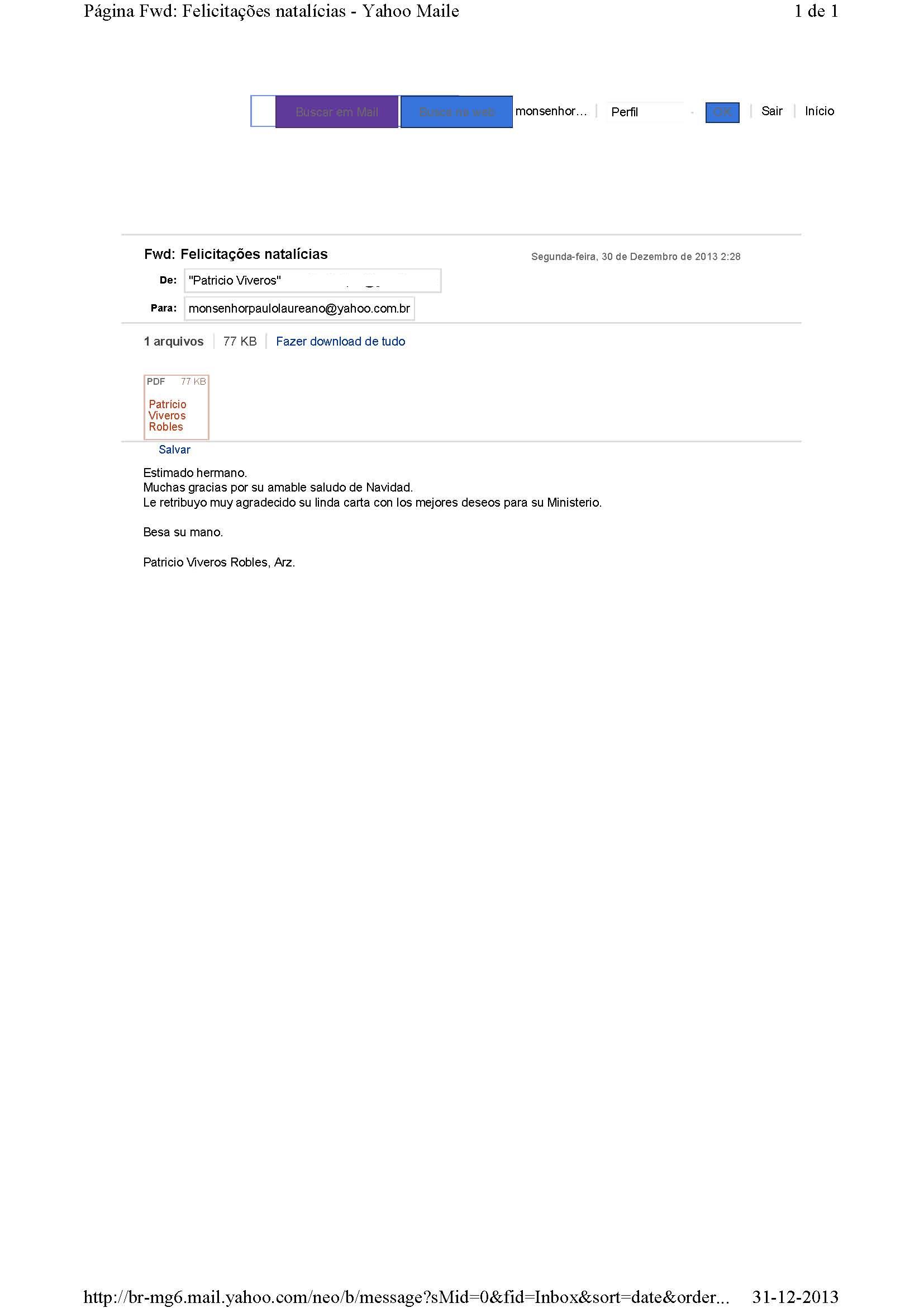 Correspondência recebida por S.B. Dom Paulo Jorge de Laureano