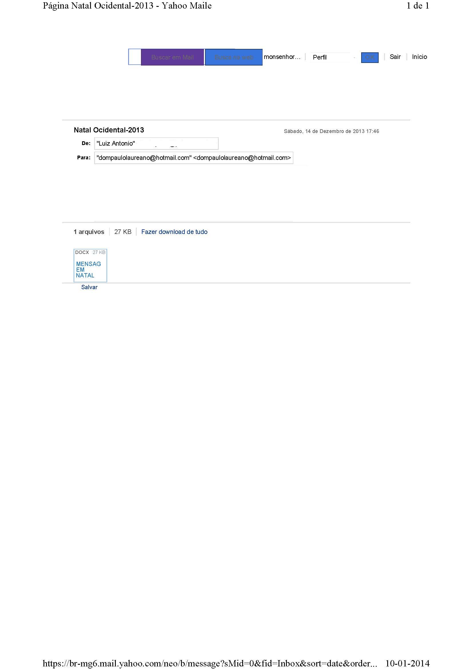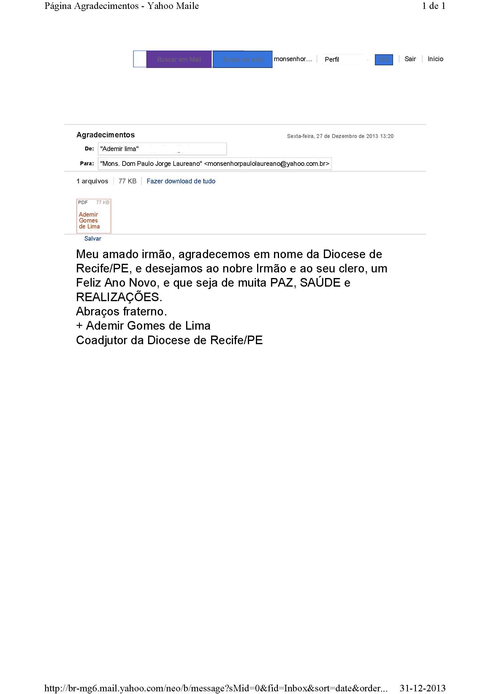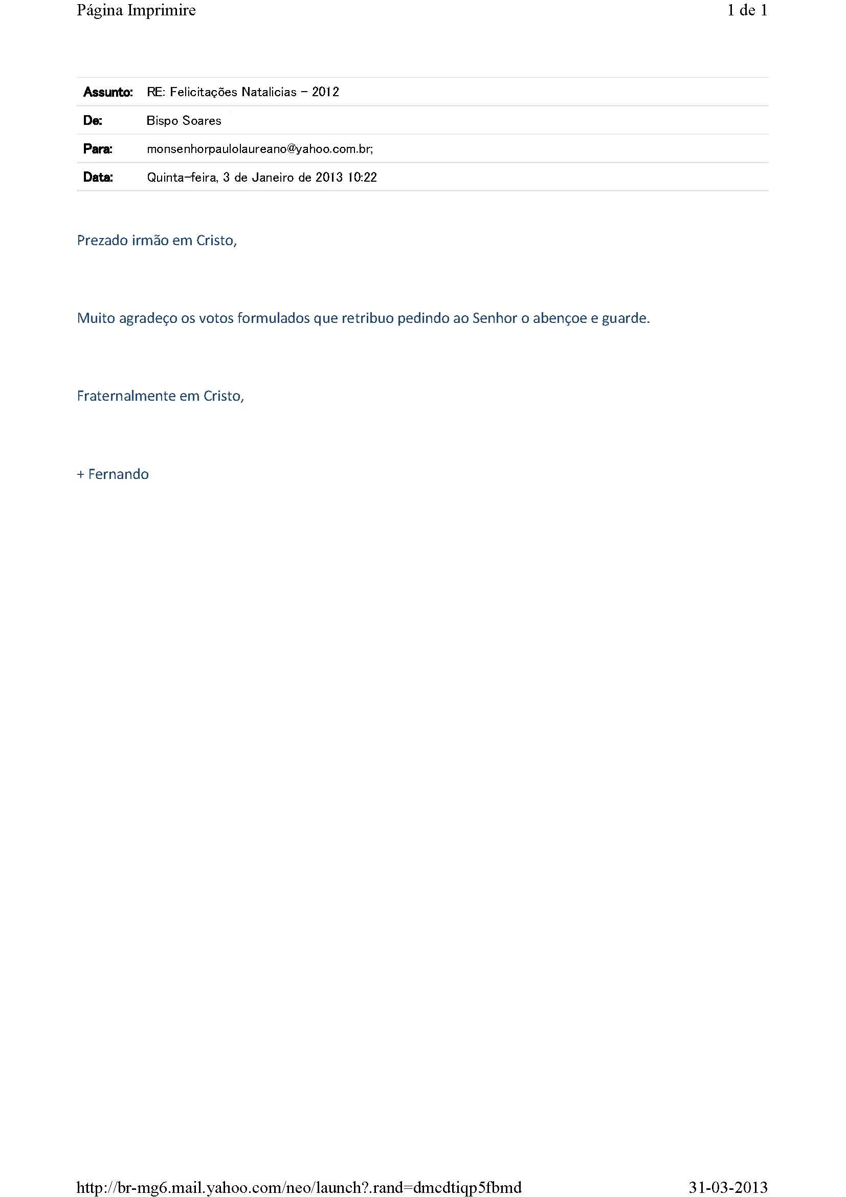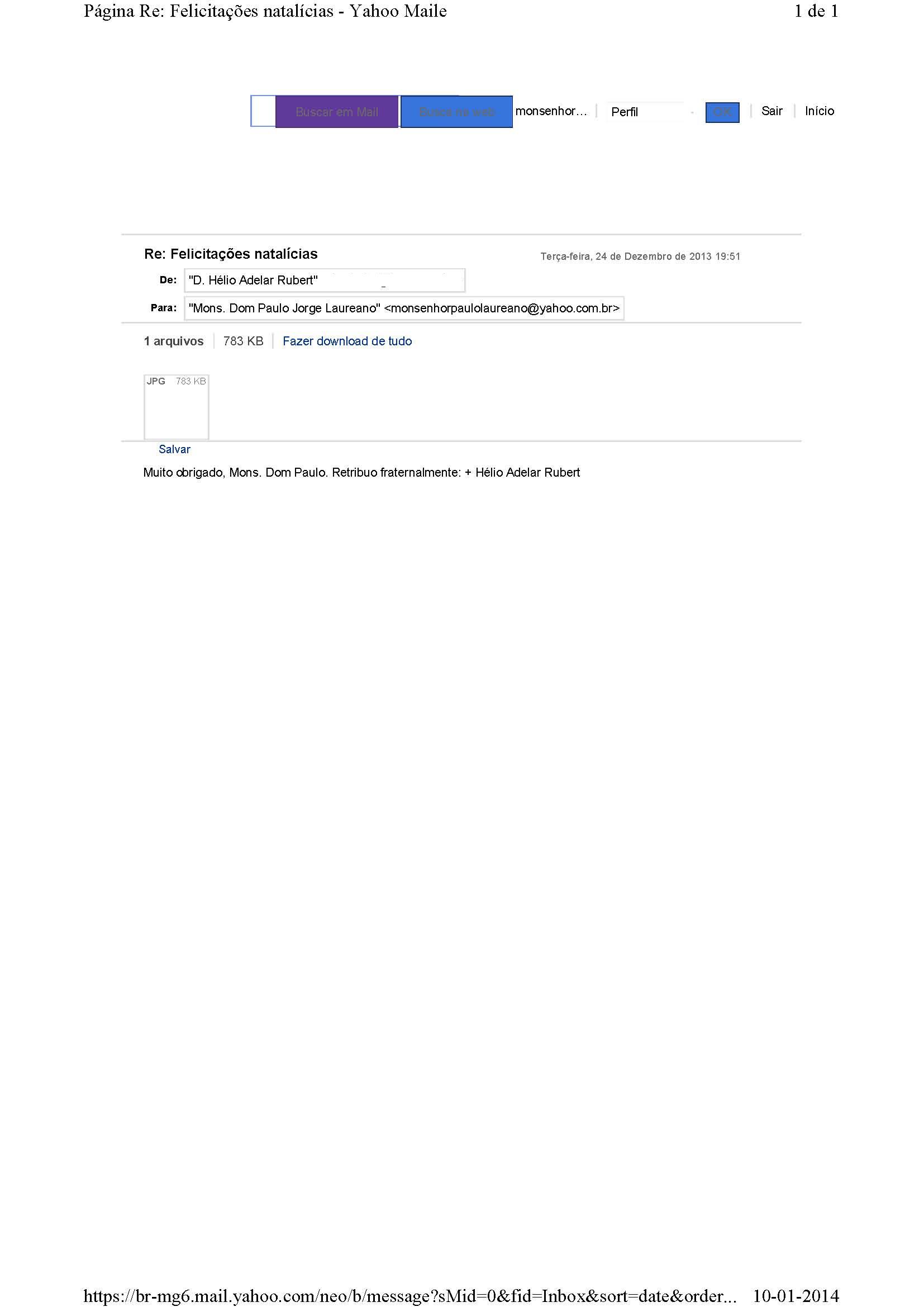 Correspondência recebida por S.B. Dom Paulo Jorge de Laureano
