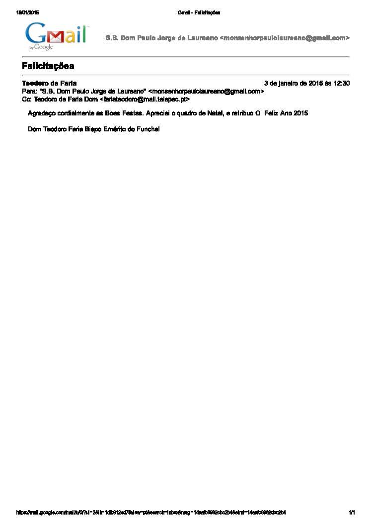 Cartas e Emails recebidos por S.B. Dom Paulo Jorge de Laureano